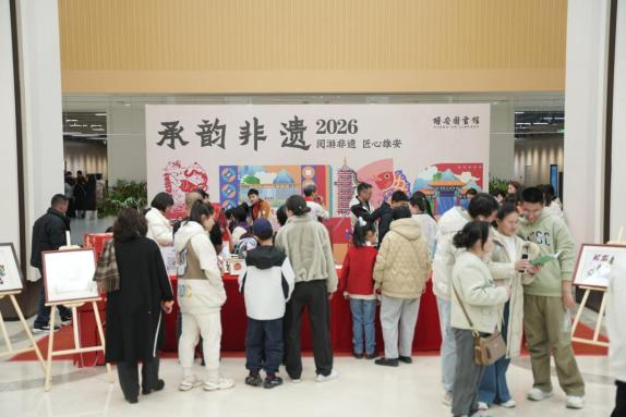 馆内各类新春特色活动更是精彩纷呈,现场人气持续攀升,处处洋溢着欢乐的节日氛围。“声动书海”音乐快闪已于假期第一天惊喜上演,乐声在书香中流淌,逾400名读者自发轻声合唱,温暖的旋律让图书馆充满团圆气息;“承韵非遗”体验区前人头攒动,非遗大师现场传艺,剪纸、面塑等沉浸式手作体验每日换新,家长与孩子携手创作,在指尖感受传统技艺的魅力;“穿越时空的年味”集卡活动深受市民喜爱,大家循着线索解谜打卡,在互动中探寻古人年俗。