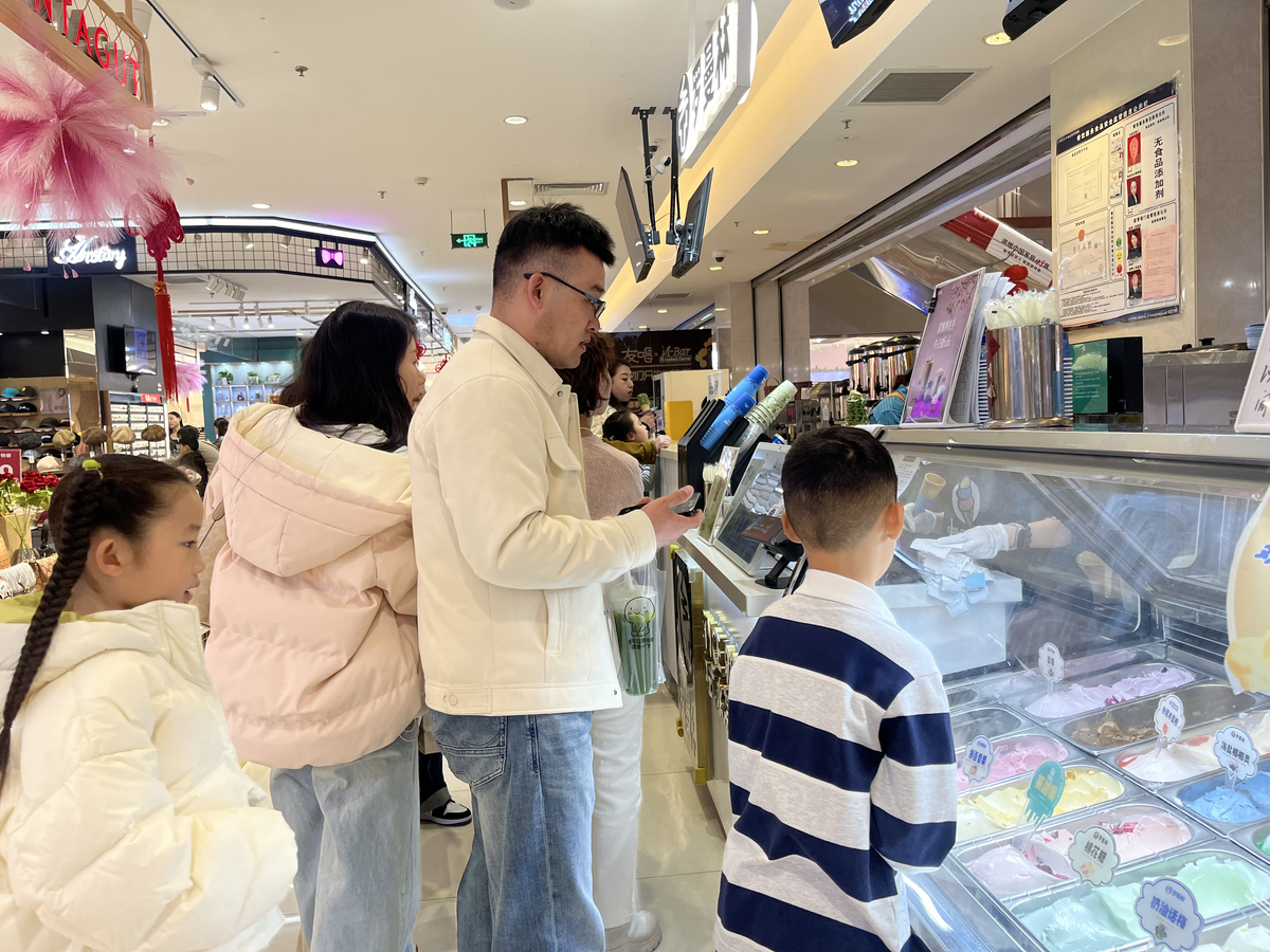 商场内市民正在排队购买冰激凌 吕慧 摄