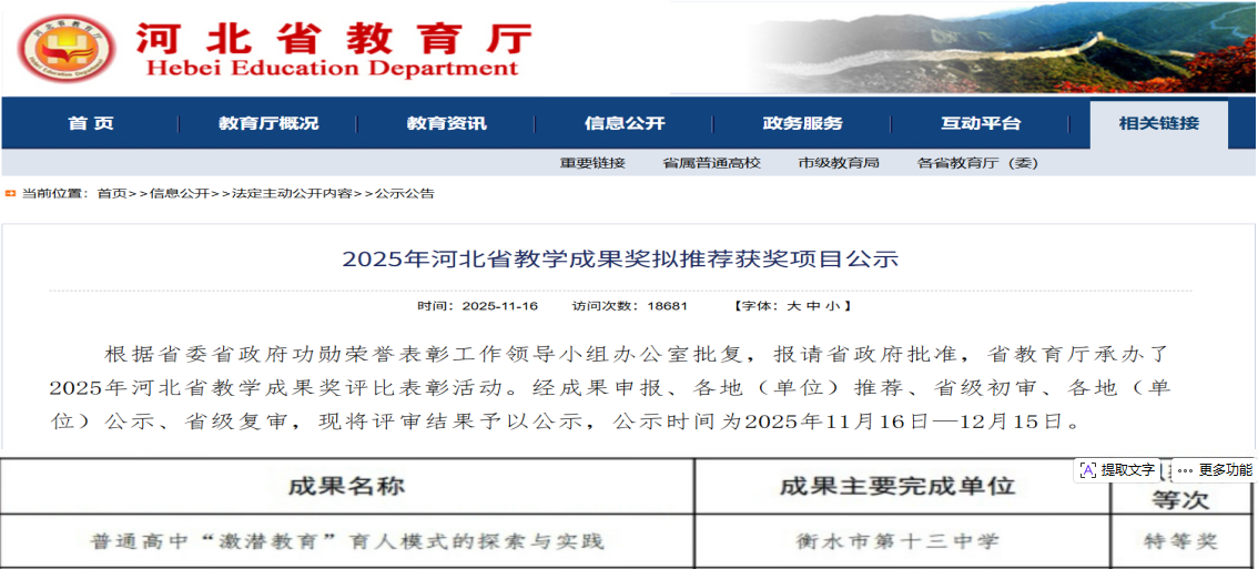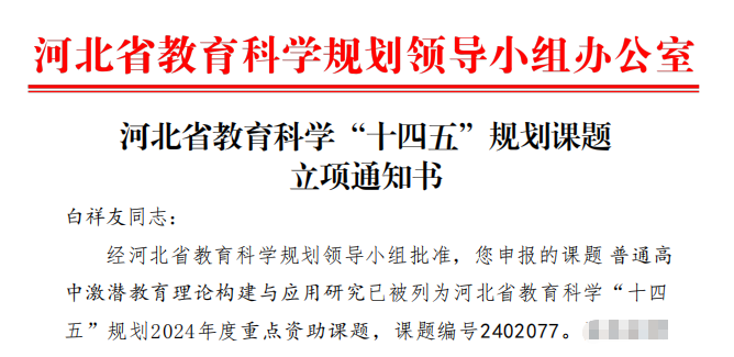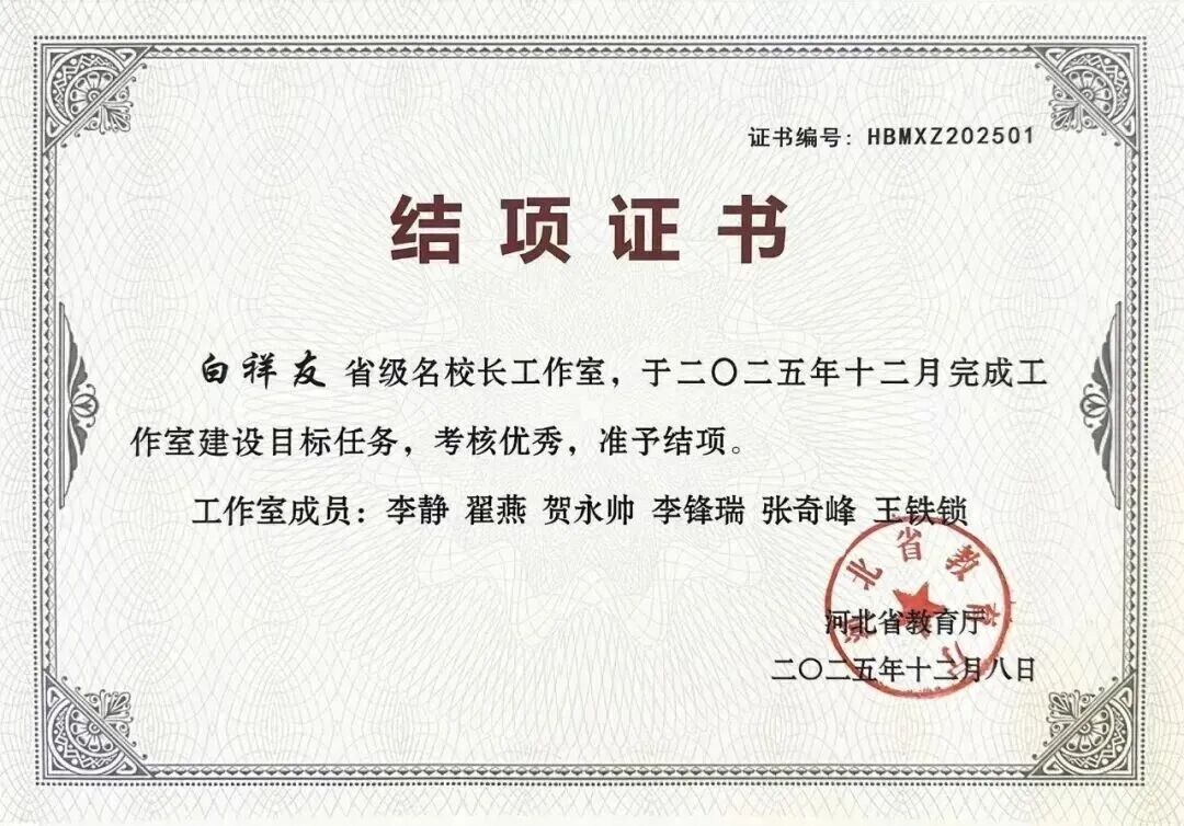 《普通高中“激潜教育”育人模式的探索与实践》荣获河北省教学成果特等奖。从理论到实践,从课堂到课题,白祥友名校长工作室用扎实的探索证明:激潜,是一种经得起检验的科学育人体系。