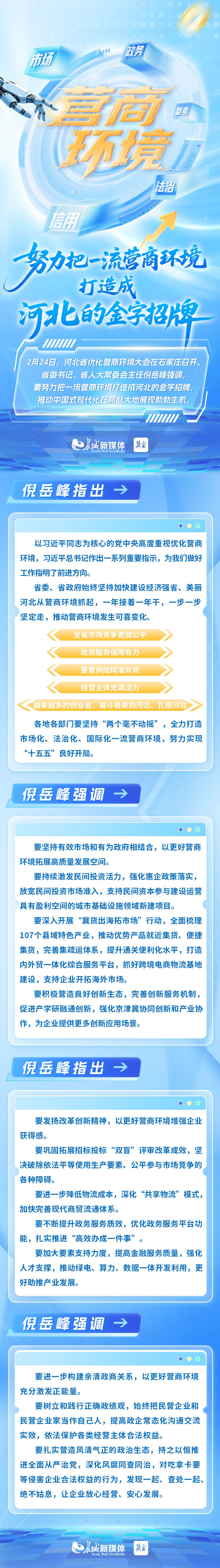 编辑:贾扬阳 来源:冀云 原标题:冀云长图丨努力把一流营商环境打造成河北的金字招牌 点赞 +1 微博 微信 我要评论 发布 相关推荐 冀时长图丨起步有力!河北1-2月经济指标稳步增长、新动能加速成长 关注 03-21 冀时长图丨三个关键词,看京津冀三地代表委员共话协同发展 关注 03-11 冀时长图丨两会好声音!代表委员热议雄安发展 关注 03-10 冀时长图丨干劲十足!燕赵大地热火朝天启新程 关注 02-25 冀时长图·开局之年看河北丨五大重点!2026年河北全力推进京津冀交通一体化 关注 02-13 冀时长图 | 米兰冬奥会来了!河北力量冰雪逐梦~ 关注 02-06 冀时长图·开局之年看河北丨体育强省建设,全速推进! 关注 02-02 冀云条漫丨答卷亮眼,蓝图上新,河北再出发 关注 01-30 热门 一天 三天 一周 1 衡水市第三人民医院开展2026年全民国家安全教育日宣传教育活动 2 《互联网平台价格行为规则》正式实施 明确禁止“大数据杀熟” 3 武邑籍北京声乐老师为衡水建市30周年谱写赞歌 4 踏青正当时 蜱虫防护别松懈 衡水市疾控中心发布蜱虫防护提示 5 零碳引领 绿色同行 衡水市“一起益企 订单式服务”绿色低碳发展 专题活动成功举办 6 【乡村行 看振兴】南蔗北种闯新路 订单育苗助增收——走进饶阳县东里满镇西沿湾村 7 阜城县古城镇:人居整治 “大拉练” 乡村治理 “加速度” 8 河北衡水:全民健身 燃动湖城 系列⑥——非遗戳脚助健身 传承实践暖湖城 9 景县开展新就业群体女性健康义诊暨免费“两癌”筛查活动 10 衡水65户农户入选今年首批省级装配式农房示范户 入选数量位居全省第三 全市累计申报示范户已超2500户 1 第二十一届京津冀开发区“枣复材杯”乒乓球邀请赛暨招商引资推介会在枣强举行 2 45幅佳作定格美好! 衡水“群众影像”展带你看见凡人烟火 3 “妈妈你在哪儿” 衡水刘风旭寻找走失18年的母亲盼团圆 4 “武邑红梨”牵手“硬木雕刻” 双IP联动助推农文旅融合与产业升级 5 春管正当时 安平多措并举守护冬小麦生长 6 阜城县古城镇聚力推广“五位一体”托管模式 激活集体经济发展动能 7 人民之心|“为官一任,造福一方” 8 武邑县:春田“智”管绘“丰”景 9 5月1日起 衡水市全面放开住房消费类公积金提取频次 10 人民之心丨要记得政府前面“人民”二字 1 衡水市2026年中考开始报名 2 衡水推出10条休闲农业与乡村旅游精品线路 3 衡水桃城区:擦亮“河北福嫂”金招牌 架起就业暖心桥 4 河北衡水:宝云公园繁花盛放 踏青赏花游人如织 5 “便民办税春风行动”持续优化衡水税收营商环境 6 【新闻发布】 解读政策 助力发展 衡水市税务系统开展税收普法宣传系列活动 7 人气爆棚! 衡水野生动物园迎来春游热潮 8 高铁推出“爱宠行”服务 衡水北站可办理宠物托运 9 阜城县市场监管局:“三位一体”服务模式为企业发展赋能 10 阜城县霞口镇:科技赋能春管忙 智慧种田促增收 广告 广告 广告 24小时 1 海报系列||早安衡水 2 人民之心丨“不慕虚荣,不务虚功,不图虚名” 3 拾光纪·习近平会见西班牙首相,这三个关键词值得关注 4 春暖湖城 衡水奥体公园迎来踏青健身热 5 衡水65户农户入选今年首批省级装配式农房示范户 入选数量位居全省第三 全市累计申报示范户已超2500户 6 【衡视频】春日游园 与动物共赏人间美好 7 探访卓越级智能工厂丨262台机器人“打工”,一键“智”炼绿钢 8 衡水十三中这场展览“艺”常精彩! 9 《互联网平台价格行为规则》正式实施 明确禁止“大数据杀熟” 10 【烟火人间】登安和塔记