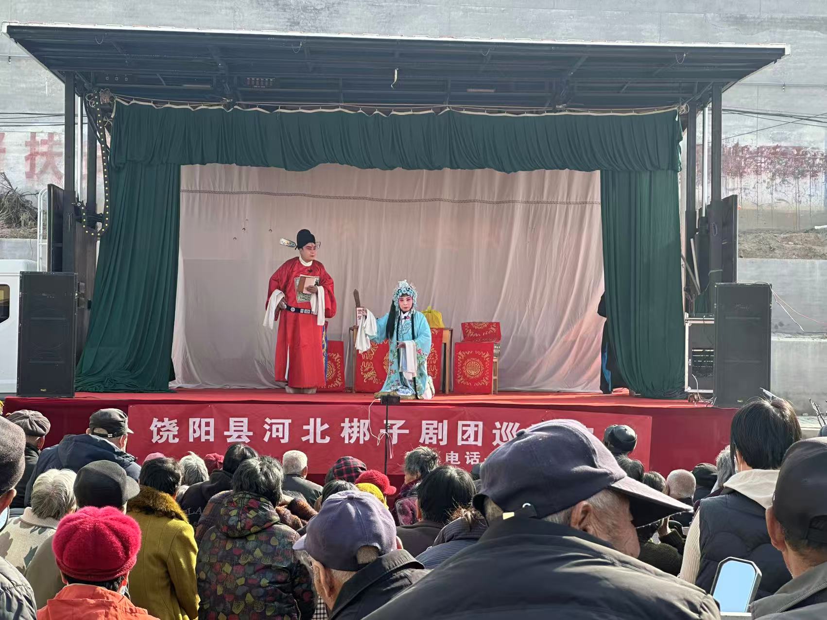 2月24日,饶阳县河北梆子剧团走进留楚镇赵留吾村,为当地群众献上多场精彩的河北梆子经典剧目演出,让村民们在家门口尽享传统戏曲文化大餐,为新春佳节增添浓浓文化年味。