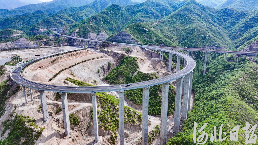 群山环抱间,京蔚高速小五台山大桥横跨深谷,气势恢宏。