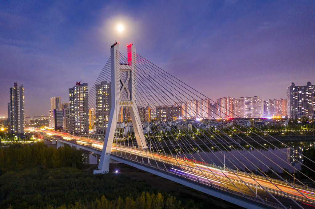 夕阳下的厂通路潮白河大桥。(河北日报资料片)河北日报记者赵永辉摄