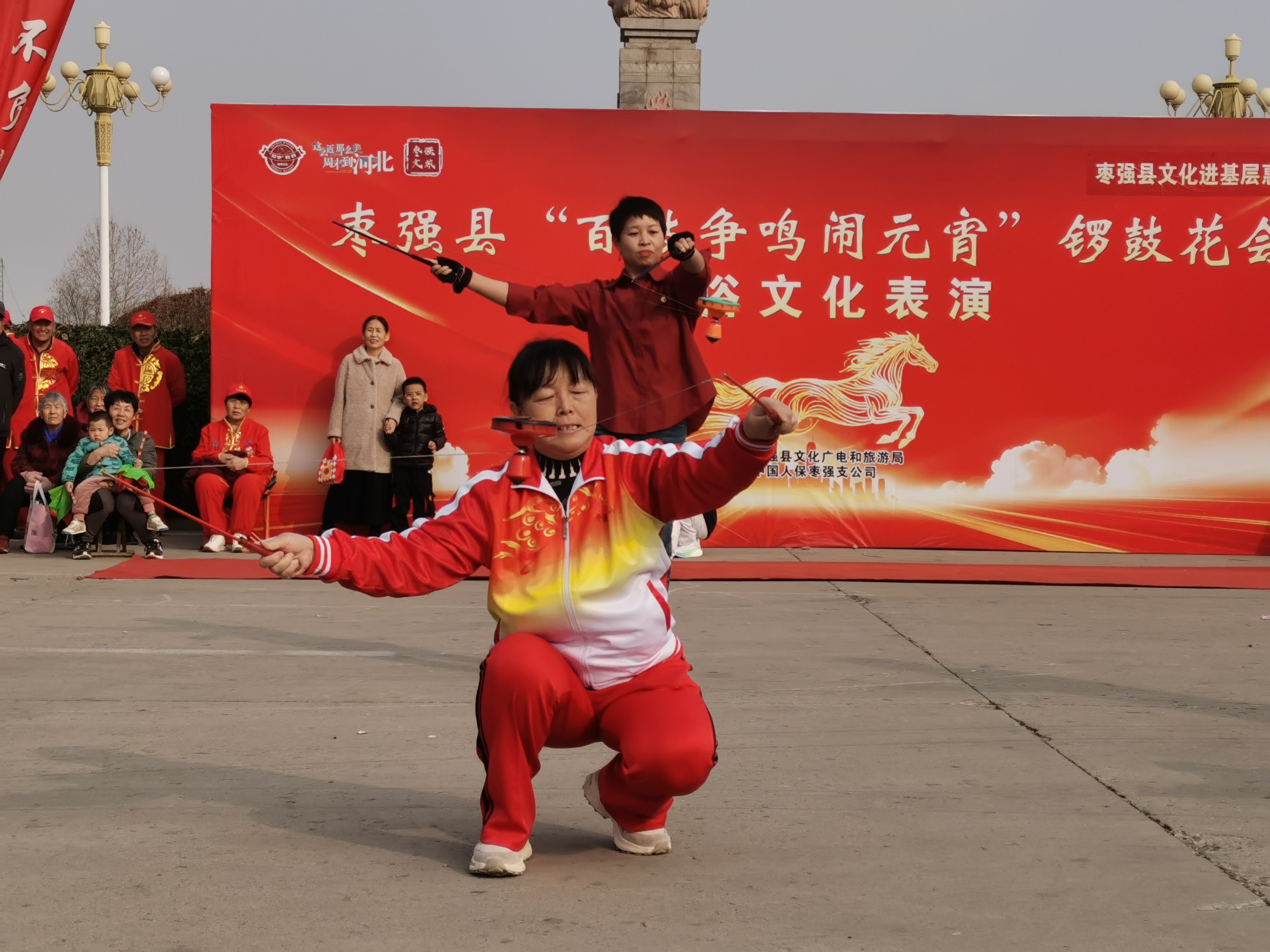 “咚!咚!咚!”随着指挥员双臂猛然挥下,十几面大鼓同时擂响,红绸翻飞,鼓槌起落如雨——由枣强县文化广电和旅游局主办、中国人保枣强支公司协办的“百鼓争鸣闹元宵”锣鼓花会民俗表演活动火热上演,为人们献上了一场年味十足的文化盛宴。