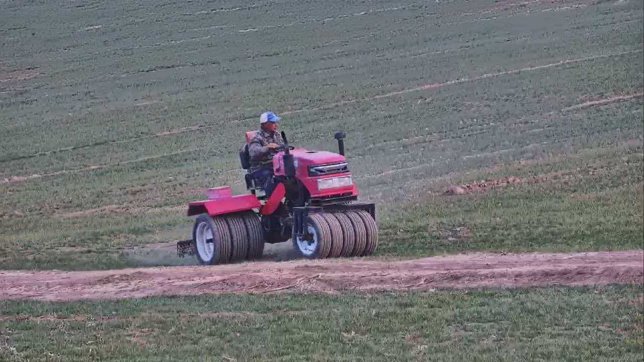 在武邑县葛徐村的麦田里,种植户侯志远正驾驶镇压拖拉机进行镇压作业。他介绍,农技人员专门到地里查看了墒情和苗情,针对土壤暄松等问题,指导他及时镇压并铺设滴灌带,采取轻浇小水、补施水溶肥等措施,促进麦苗早发快长。