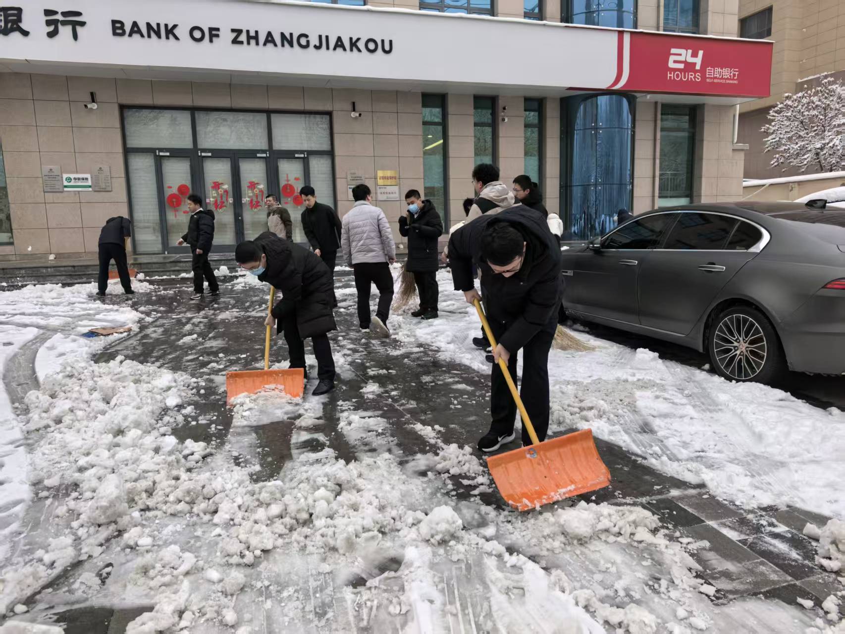 雪情就是命令,服务彰显初心。一大早,员工们便拿着铁锹、扫帚等工具来到网点门前,分工协作、默契配合。大家不畏严寒、干劲十足,有的奋力铲冰,有的认真扫雪,沿着门前道路及人行道逐步清理积雪。寒风中,大家热情高涨,忙碌的身影成为雪中一道温暖的风景线。经过一番紧张劳作,网店门前及周边道路积雪被彻底清理干净,一条安全通畅的出行通道顺利打通,有效消除了安全隐患,赢得了过往群众的点赞。