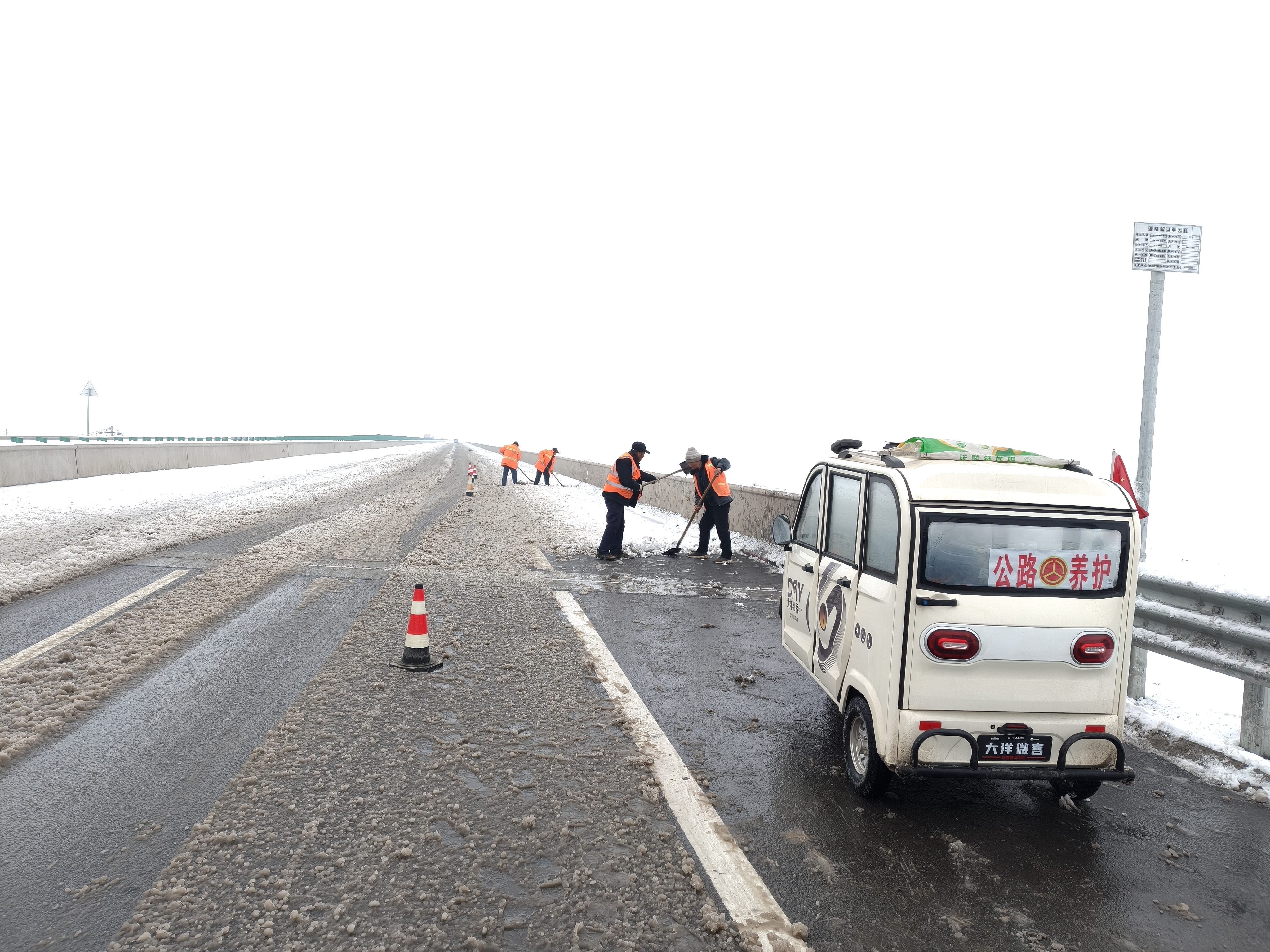 除雪同时,该局加强与气象、交警等部门联动,密切关注天气变化,实时共享路况信息,通过指示牌、流动电子显示屏等引导车辆合理规划路线、减速慢行。路政执法人员全员上路,加强路面巡查,提供爱心物资,及时救援受困车辆,维护除雪作业现场秩序。