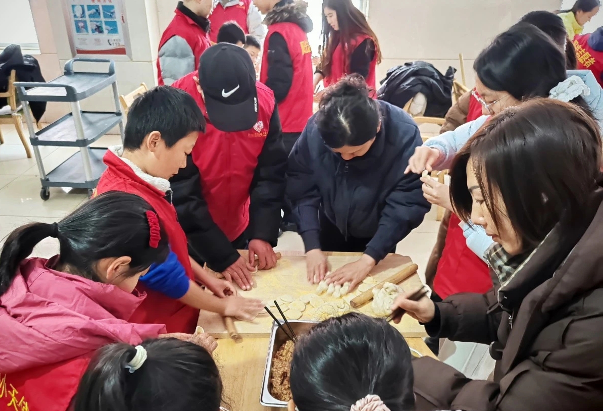 春风送暖意融融,志愿服务情浓浓。上午10时许,志愿者们带着精心准备的软糯蛋糕、香甜水果及元宵,满怀热忱地抵达同岳敬老院。一进门,大家便分工协作、有条不紊地忙碌起来:有的志愿者将水果蛋糕送到老人手中;有的挽起袖子,和老人们一起揉面、包饺子。指尖翻飞间,一个个圆润饱满的饺子便成型了,热烈气氛里满是浓浓的暖意。