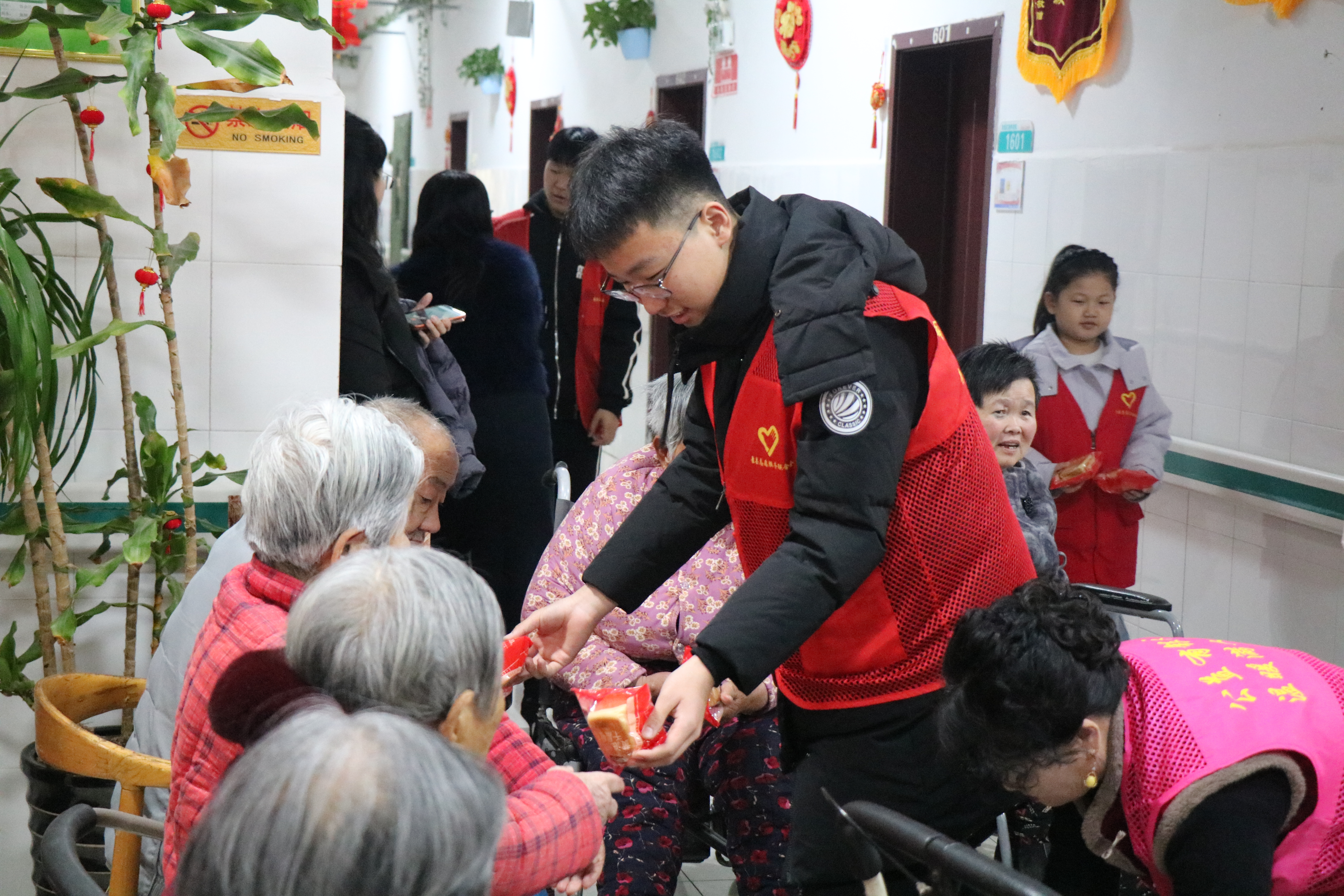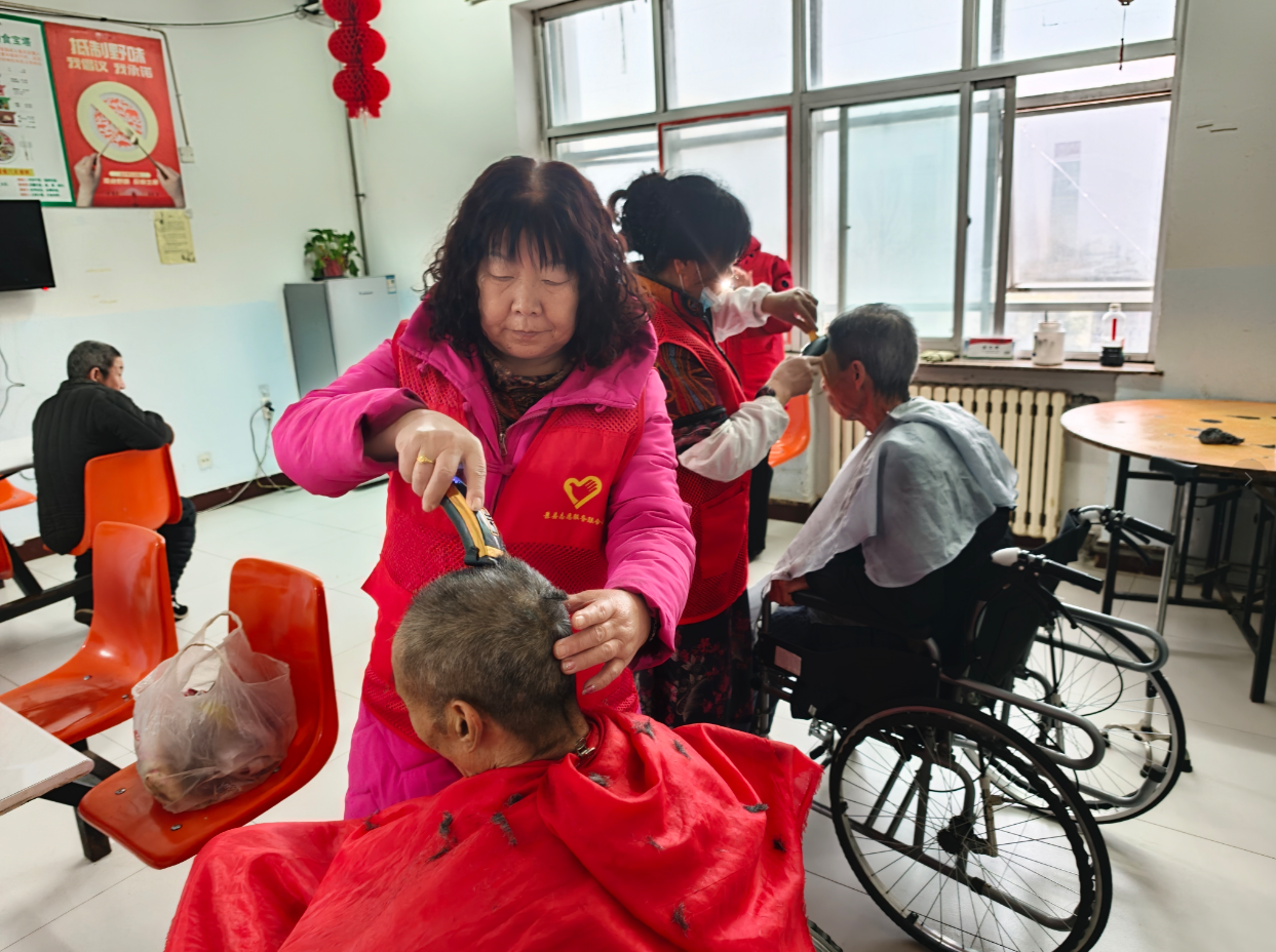演出落幕,温情延续。志愿者们迅速转换角色,化身“贴心儿女”。一边,理发、修剪指甲、打扫卫生等便民服务有序进行;另一边,志愿者们围坐在老人身边,促膝谈心,详细了解他们的生活起居与身体状况,用最朴实的陪伴给予老人精神慰藉。活动中,志愿者们还将自筹购买的慰问品送到老人手中,让老人们真切感受到社会大家庭的温暖。