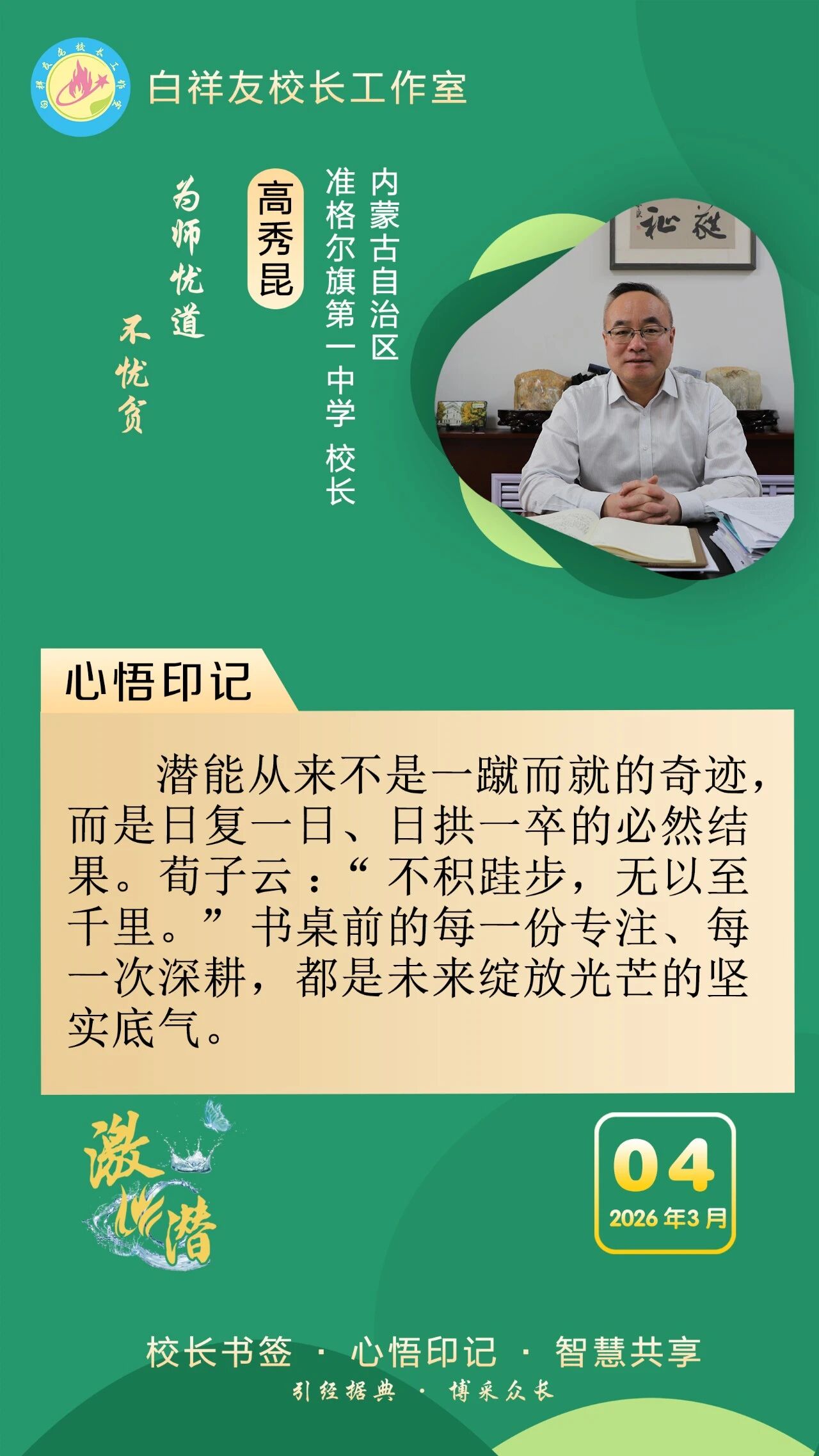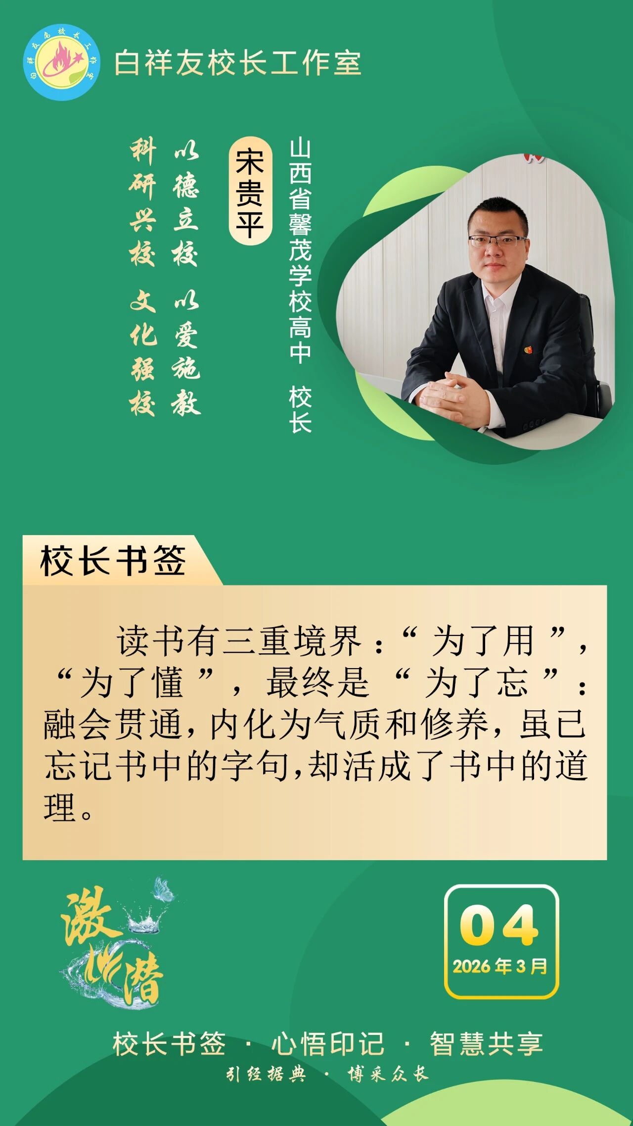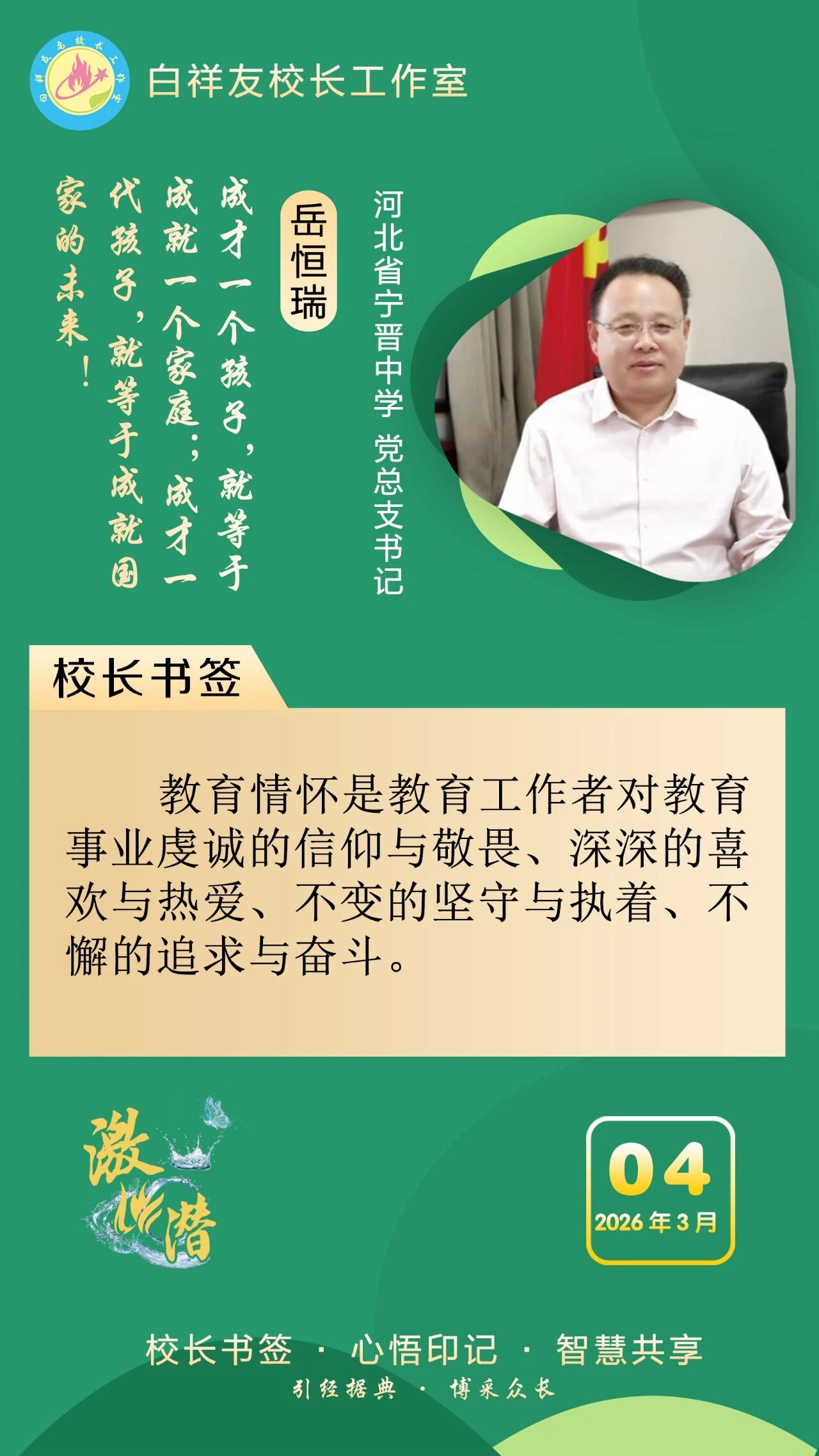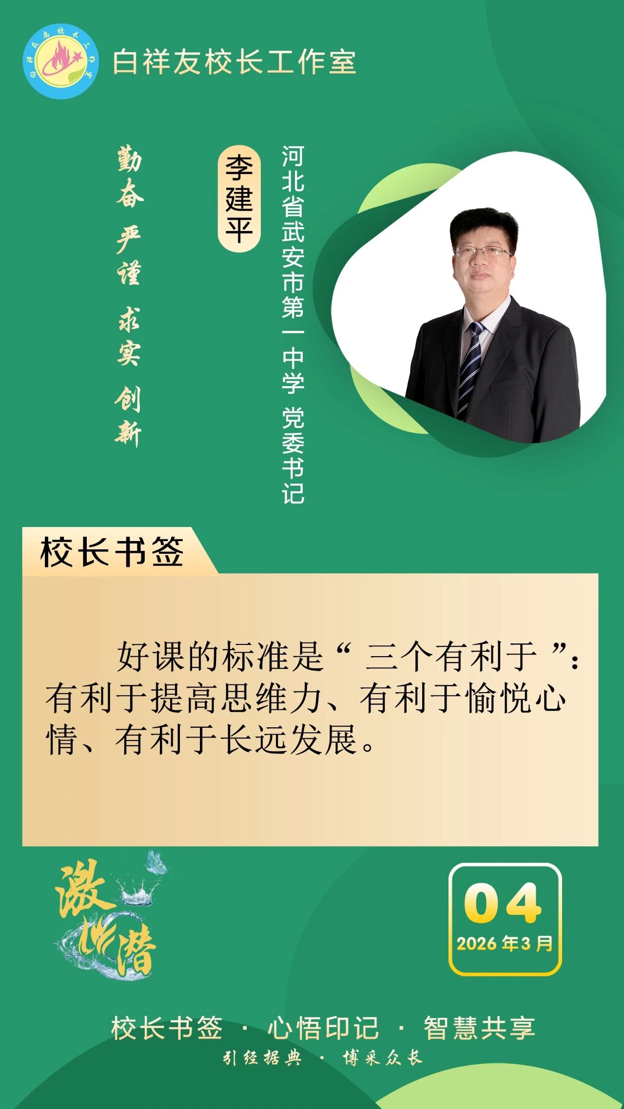 “白祥友校长工作室”成立于2019年4月,是教育部“国培计划”中小学名校长领航工程、河北省首批名校长工作室,目前省内外成员校59所。工作室坚持“资源共享、智慧共融、互助共赢”理念,已成为思想碰撞的交流场,资源共享的品牌站,成果展示的辐射源。 点赞 +1 微博 微信 我要评论 发布 相关推荐 衡水市名校长大讲堂在衡水十三中举办 教育部中小学校长培训办公室于维涛主任作专场报告 教育大观 01-19 白祥友校长工作室成员带队参观衡水十三中 教育大观 2024-05-22 “白祥友校长工作室”成员校石家庄十五中百余教师来衡水十三中参观 教育大观 2024-04-01 热门 一天 三天 一周 1 那藏不住的情怀与思考——读杨新城《抱愧衡中》有感 2 衡水市冀州区举办2026年“春风行动”专场招聘会 3 火炬传递暖湖城 雷锋精神永传承 全国百城全民传递雷锋·林秀贞双百人物火炬(衡水首站)启动仪式成功举办 4 【“十五五”开局看衡水】科技赋能现代农业“快马加鞭” ——冀州区科芯生态智慧农场见闻 5 枣强住建局:开展学雷锋活动 助力人居环境提升 6 武强县农业农村局:雪后农技送服务 春季田管正当时 7 2026年衡水市春季赏花地图出炉 8 衡水阜城:元宵喜乐会热闹开演 民俗非遗齐上阵添年味 9 武邑县多部门联合开展学雷锋志愿服务活动 10 聚焦一老一小 深挖寓教于乐 桃城区萃景社区元宵节系列活动打造基层服务新场景 1 那藏不住的情怀与思考——读杨新城《抱愧衡中》有感 2 衡水市冀州区春风社区多彩活动迎元宵 3 昨夜今晨 衡水市普降大到暴雪 故城积雪最深达13厘米 4 书香里闹元宵 衡水市图书馆双主题活动打造可触可感的节日文化盛宴 5 衡水市冀州区迎宾社区“一老一小”共庆元宵佳节 6 两会特别报道|春天里,听奋进中国的铿锵足音——写在2026年全国两会召开之际 7 衡水市桃城区南菜园社区:看《雷锋》学榜样 社区少年悟担当 8 阜城县古城镇:“志愿红”冲锋清雪一线 “关怀组”守护特殊群体 9 武邑县武罗社区开展学雷锋志愿服务活动 10 阜城县蒋坊乡:以雪为令齐上阵 清雪便民暖民心 1 衡水元素闪亮法国巴黎赛马场 2 麦田里的“问诊会”——武邑县部门联动护航春管 3 厚植营商沃土 激活产业动能 衡水市安平县2025年丝网产业营收突破1150亿元 4 鼓声铿锵秧歌俏!阜城县刘老人村文艺队伍提前“热场”迎元宵 5 “京津冀最美湿地”衡水湖迎来春季候鸟迁徙高峰 6 看衡水十三中学习的新年全家福 7 阜中开展寒假入户走访活动 8 春节期间 衡水市用心用情关爱新就业群体 9 京津冀协同发展12年 | 奋楫“十五五” 乘势向未来 10 那藏不住的情怀与思考——读杨新城《抱愧衡中》有感 广告 广告 广告 24小时 1 衡水中小学教师资格笔试3月7日开考 2 衡水市持续擦亮“持之‘益’衡”品牌底色 3 金融镜鉴|阳光保险被罚140万,涉关联交易管理不到位等 4 阜城农商银行:将金融“活水”精准滴灌至企业“毛细血管” 5 白祥友名校长工作室 | 激潜教育探索随笔(第769期) 6 武邑联社:节后营销访万家 金融赋能显担当 7 武强农商银行:“四轮驱动”助推存款突破百亿大关 8 故城联社:公交企业职工工资专户开立取得阶段成效 9 精准施策惠民生 金融活水润城乡——枣强农商银行高效推动2026年旺季营销 10 220亿元!深州农商银行各项存款余额再上新台阶