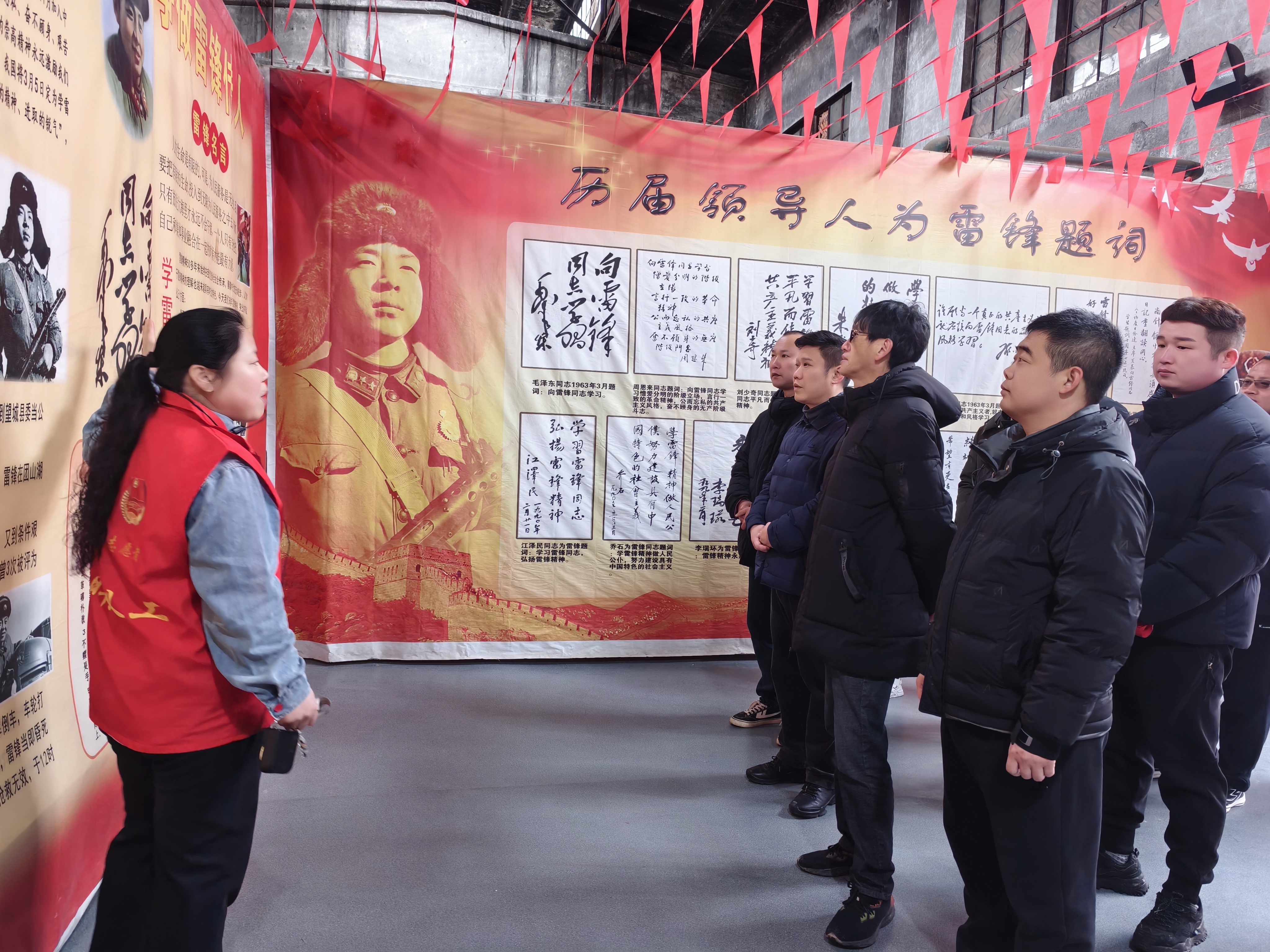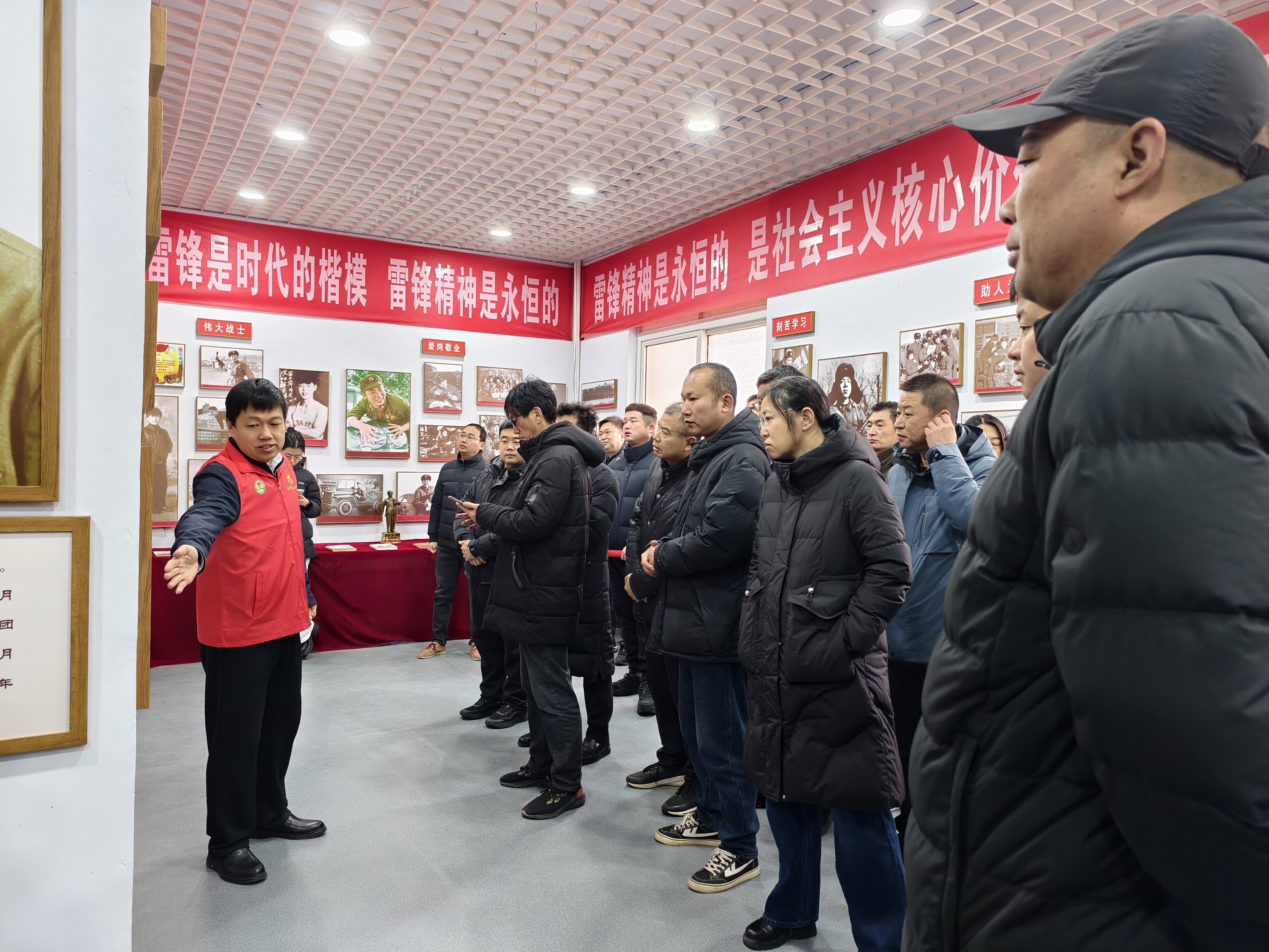 歌声落罢,参观者们走进场馆依次参观。馆长陈奇峰为大家讲述雷锋的生平,将雷锋同志的感人事迹与精神内核徐徐铺展。面对一张张珍贵照片、一件件历史展品,或驻足凝视或轻声交流,大家在沉浸式的参观中感悟雷锋精神的温暖与力量。