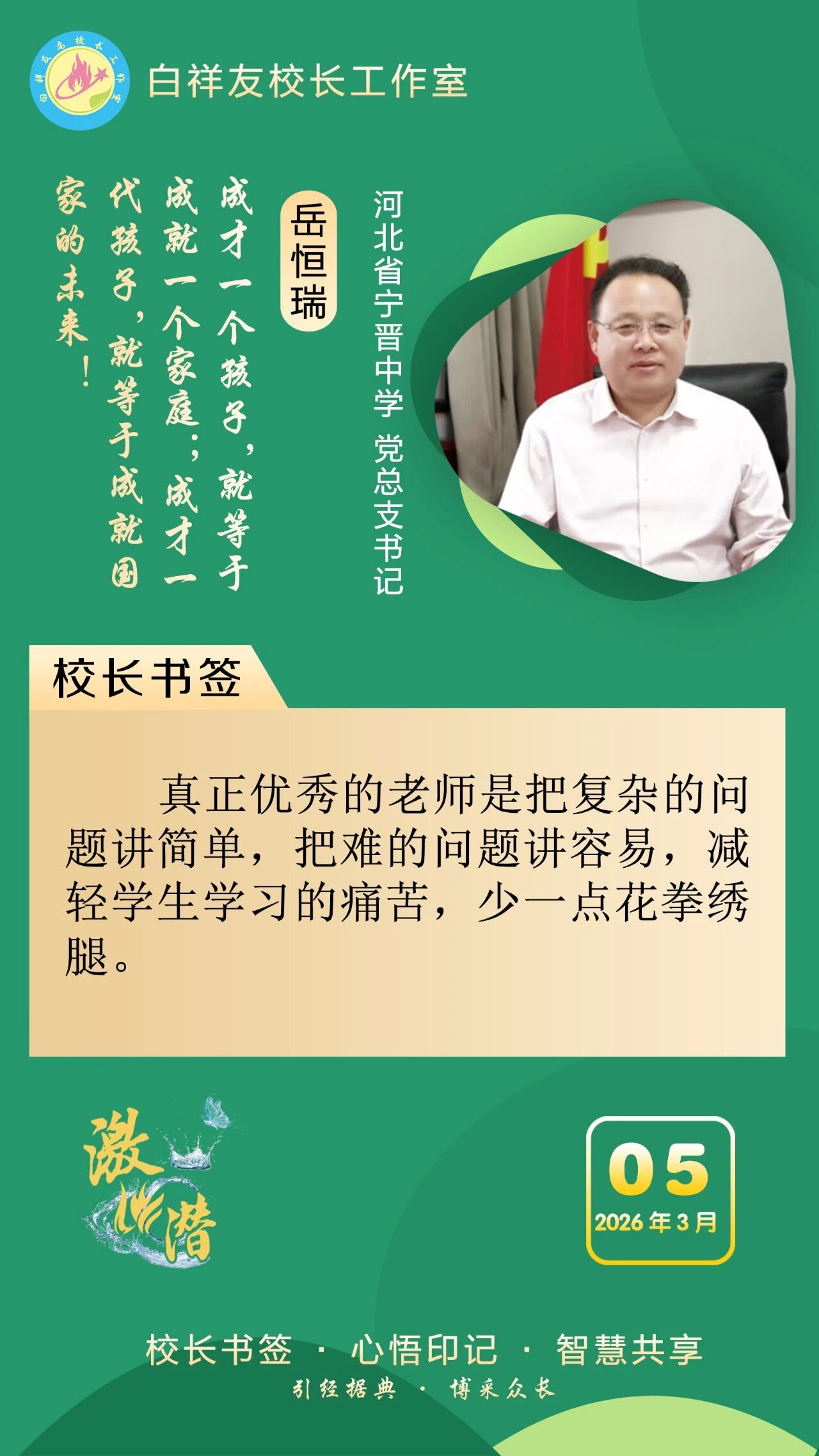 点赞 +1 微博 微信 我要评论 发布 相关推荐 衡水市名校长大讲堂在衡水十三中举办 教育部中小学校长培训办公室于维涛主任作专场报告 教育大观 01-19 白祥友校长工作室成员带队参观衡水十三中 教育大观 2024-05-22 “白祥友校长工作室”成员校石家庄十五中百余教师来衡水十三中参观 教育大观 2024-04-01 热门 一天 三天 一周 1 让雷锋精神在新时代绽放光芒 衡水市系列志愿服务活动点亮“3·5”学雷锋纪念日 2 麦粒“画”雷锋!阜城县霞口镇创新形式激活青少年思政课堂 3 恒为检验检测认证(河北)集团有限公司董事长王河山:助力衡水工程橡胶产业在国际舞台绽放光彩 4 衡水籍拳手靳金城泰国赛场连克强敌 斩获ABF金腰带挑战资格 5 【乡村行 看振兴】葡萄春管忙 静待“玫瑰香”——走进冀州区周村镇东高庄村 6 3月1日至5日接待游客近4000人次 衡水雷锋馆迎来参观热潮 7 冀州区举办“学雷锋·文明实践我行动”主题活动 8 【乡村行 看振兴】“小菌棒”撑起增收“大希望”——探访衡水硕鑫食用菌合作社 9 衡水市商务局打造一流营商环境助力企业“走出去” 10 践行雷锋精神 凝聚奋进力量 枣强县学雷锋纪念日让温暖接力传递 1 那藏不住的情怀与思考——读杨新城《抱愧衡中》有感 2 衡水市冀州区迎宾社区“一老一小”共庆元宵佳节 3 两会特别报道|春天里,听奋进中国的铿锵足音——写在2026年全国两会召开之际 4 捶捣千年艾 匠心续古香——走进冀州区石与木艾草文化园 5 火炬传递暖湖城 雷锋精神永传承 全国百城全民传递雷锋·林秀贞双百人物火炬(衡水首站)启动仪式成功举办 6 衡水市冀州区举办2026年“春风行动”专场招聘会 7 阜城县建桥乡开展元宵节系列主题活动 8 【褒扬诚信典型】 衡水公交车司机拾金不昧 五千现金物归原主 9 【宣传诚信理念】衡水市桃城区数据和政务服务局开展“信用代证”宣传活动 10 巧手做挂饰 欢乐闹元宵 衡水市博物馆开展元宵节扭扭棒挂饰制作活动 1 那藏不住的情怀与思考——读杨新城《抱愧衡中》有感 2 小烧饼“烙”出大产业 ——探访河北盛亿隆食品产业园 3 衡水市冀州区春风社区多彩活动迎元宵 4 衡水市桃城区以特色服务品牌赋能营商环境提质增效 5 抢抓农时 科技护航 武邑县57万余亩冬小麦春管工作有序推进 6 衡水桃城区孔颖达公园社区:主题展览传薪火 雷锋精神润童心 7 衡水市景县以“数字变量”撬动县域制造业“最大增量” 8 衡水市桃城区南菜园社区:看《雷锋》学榜样 社区少年悟担当 9 武邑县武罗社区:一盏花灯传古韵 甜糯元宵聚温情 10 衡水桃城区城东社区开展学雷锋志愿服务活动 把温暖送进福利院 广告 广告 广告 24小时 1 汇聚数字化转型“金点子” 锻造制造业发展“金钥匙” 衡水这场问需问计座谈会干货满满 2 安平农商银行:凝心聚力强营销 存款稳增显实效 3 农行衡水分行:移动金融服务进企业 打通金融便民“最后一公里” 4 中国人寿饶阳支公司开展敬老爱老活动 5 芳华悦读润巾帼 书香甜蜜暖人心 ——冀州区“三八”国际妇女节主题活动见闻 6 搭平台 听民声 立承诺 展风采——衡水金融业开展“金融315”集中宣传展示活动 7 中国人寿深州支公司开展学雷锋志愿服务活动 8 衡水市饶阳县举办2026年元宵花会展演暨第二届鼓王争霸赛 9 最是一年春好处 文旅欢歌启华章 ——衡水市饶阳县2026年新春文化活动亮点纷呈 10 衡水十三中学子这样追“锋”!