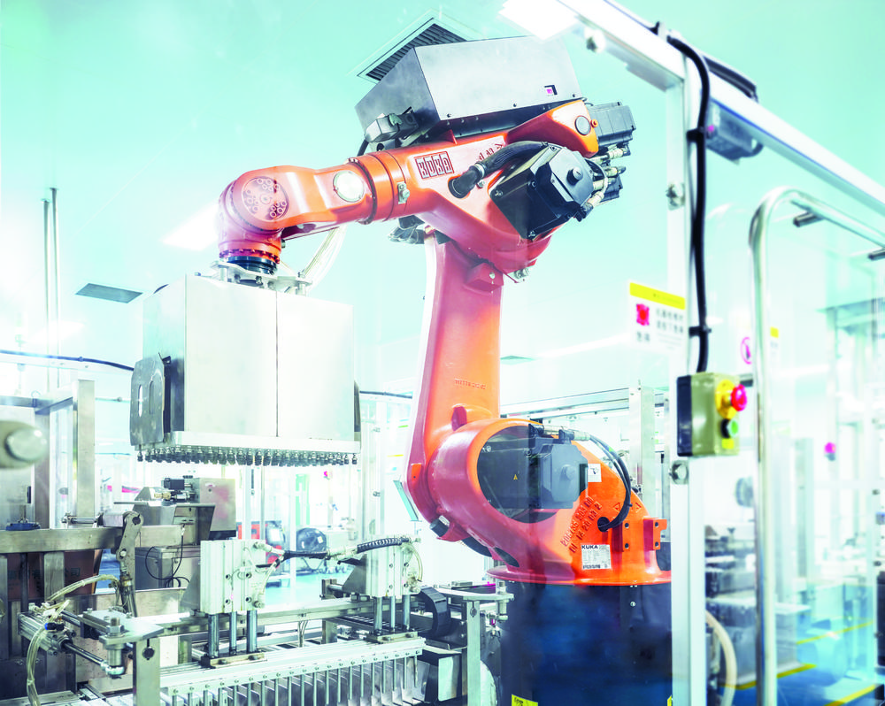 在神威药业集团现代中药注射剂生产车间,自动化包装机器人正在加紧进行药品的生产。