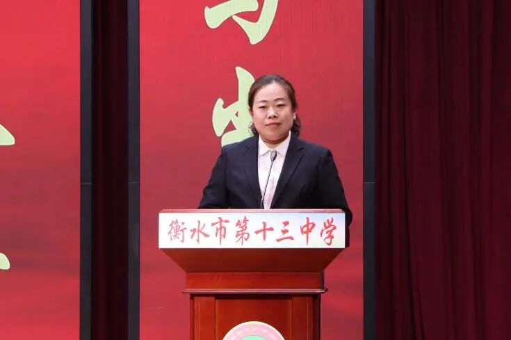 教师代表张慧慧老师上台发言。她结合自身教育教学实践,分享了在十三中这片教育热土上的成长感悟,真挚的情感引起了在场教师的强烈共鸣。
