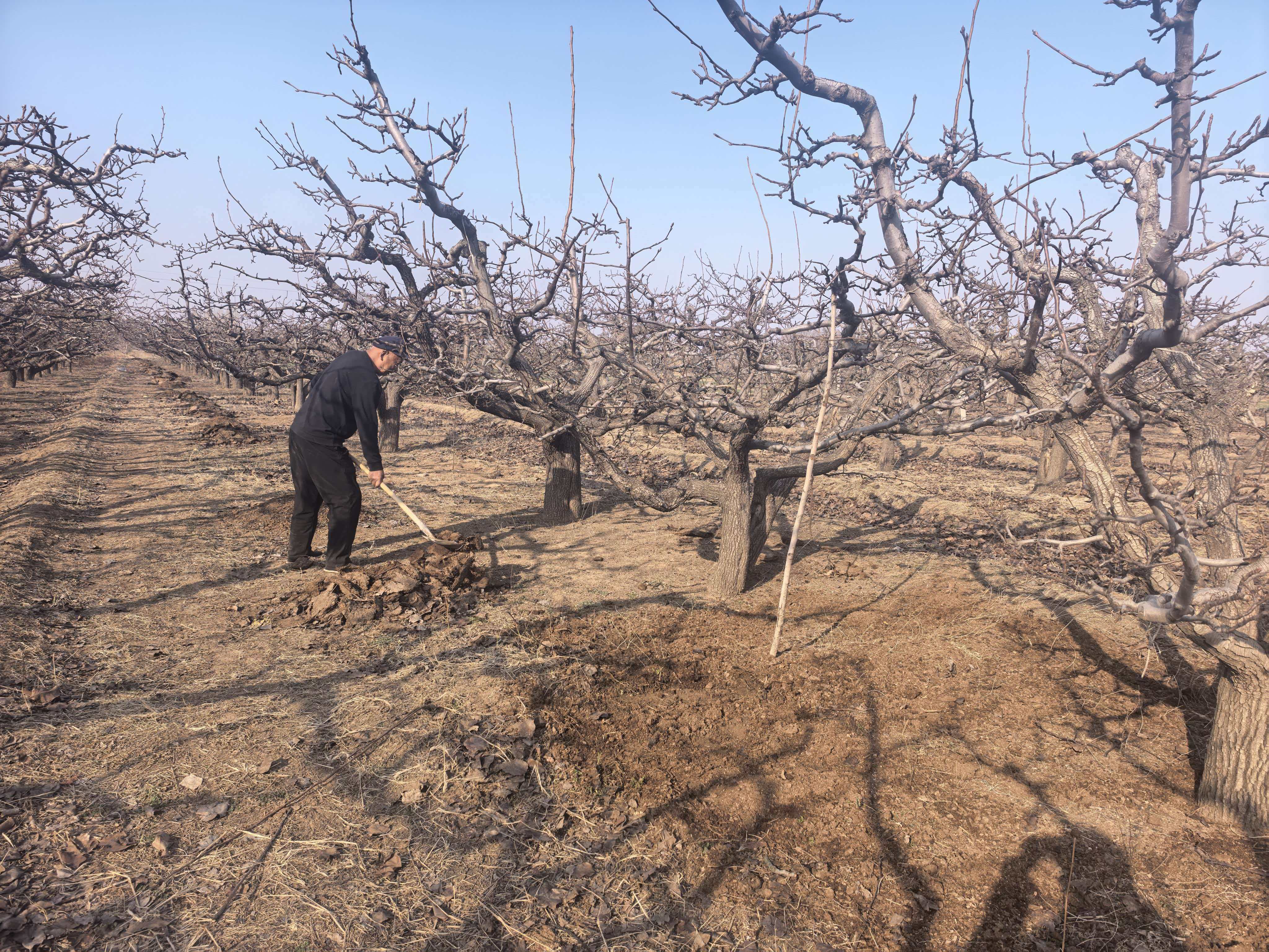对于冬季未及时施用底肥的地块,人们抢抓墒情施入腐熟的农家肥。施肥后,大家又用犁具将梨树行间的土地犁得平整松软,既利于肥料融入土壤,也方便后续灌溉和农事操作。农家肥肥效长、养分全,能给老梨树补充足够的营养,让花开得更旺,结出的梨色好看,口感更好。