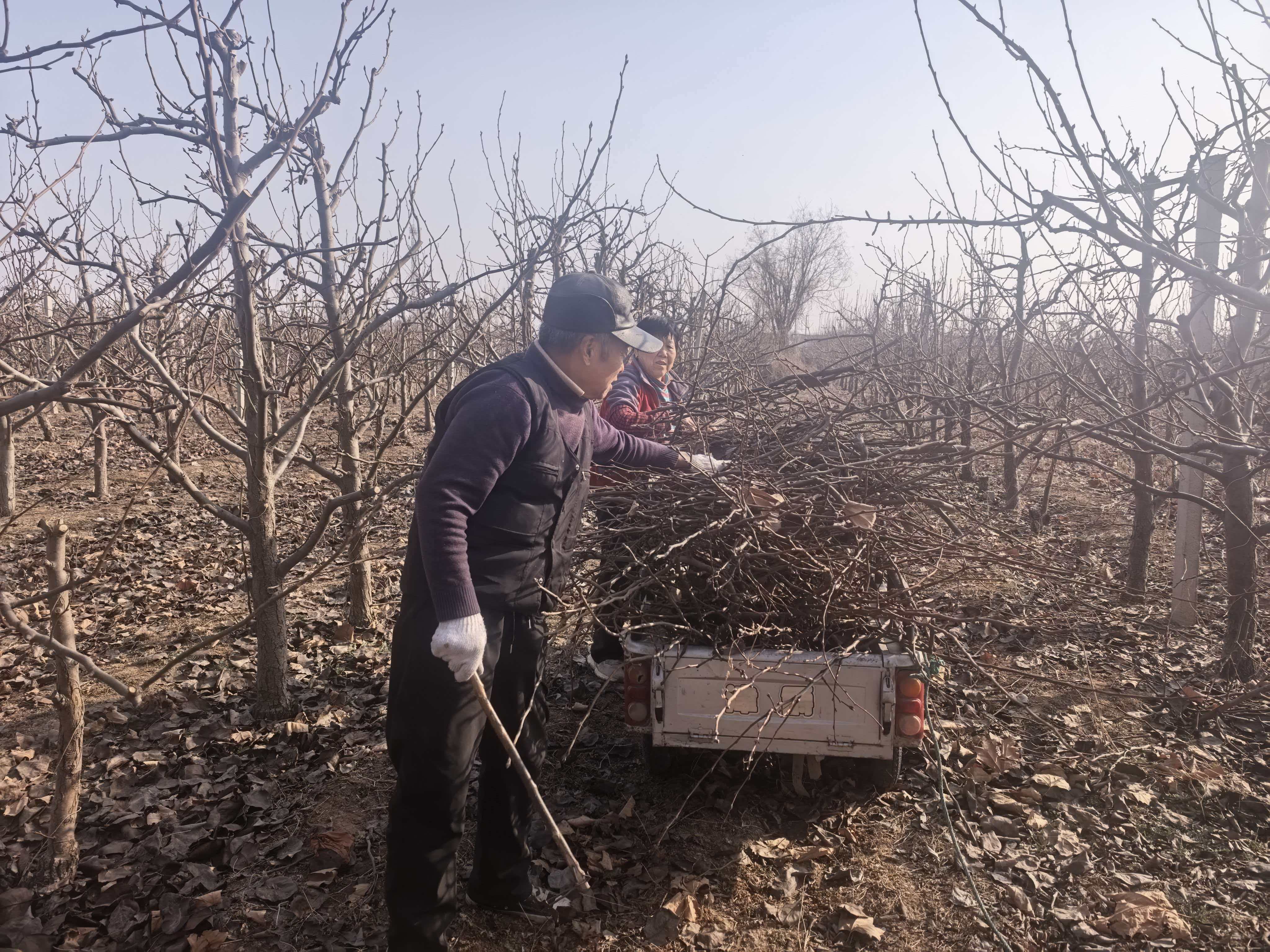 梨园内,梨农们手持耙子、镰刀,将树下的落叶、杂草逐一清理,把冬季修剪后留下的枝条集中归整。彻底清园可消除越冬病菌和虫卵滋生环境,还能通过枝条回收实现资源再利用,让田间管理更具效益。技术人员刘风义介绍:“这些枝条有专门的回收站收,一天清理下来,不仅能挣工资,捡拾的梨枝还能卖四五十块钱。”