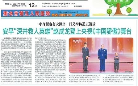 ——2024年6月20日,安平县马店镇一名3岁男童不慎坠入深井,由于井口狭窄,消防人员多次尝试无果。36岁的赵成龙挺身而出,倒吊下井,最终协助消防员救人成功。(2024年11月12日《衡水日报·晨刊》1版)