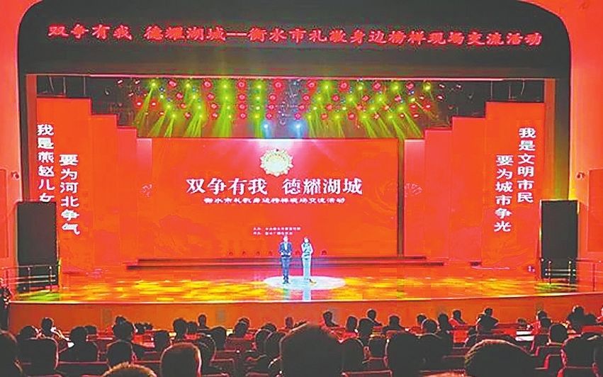 可亲可敬的榜样,可信可学的标杆。2026年2月9日晚,以“双争有我 德耀湖城”为主题的衡水市礼敬身边榜样现场交流活动在保利大剧院举行,集中展示2025年全市社会公德、职业道德、家庭美德、个人品德建设成果。这是衡水市连续第九年举办的年度先进模范集中宣传推介活动。