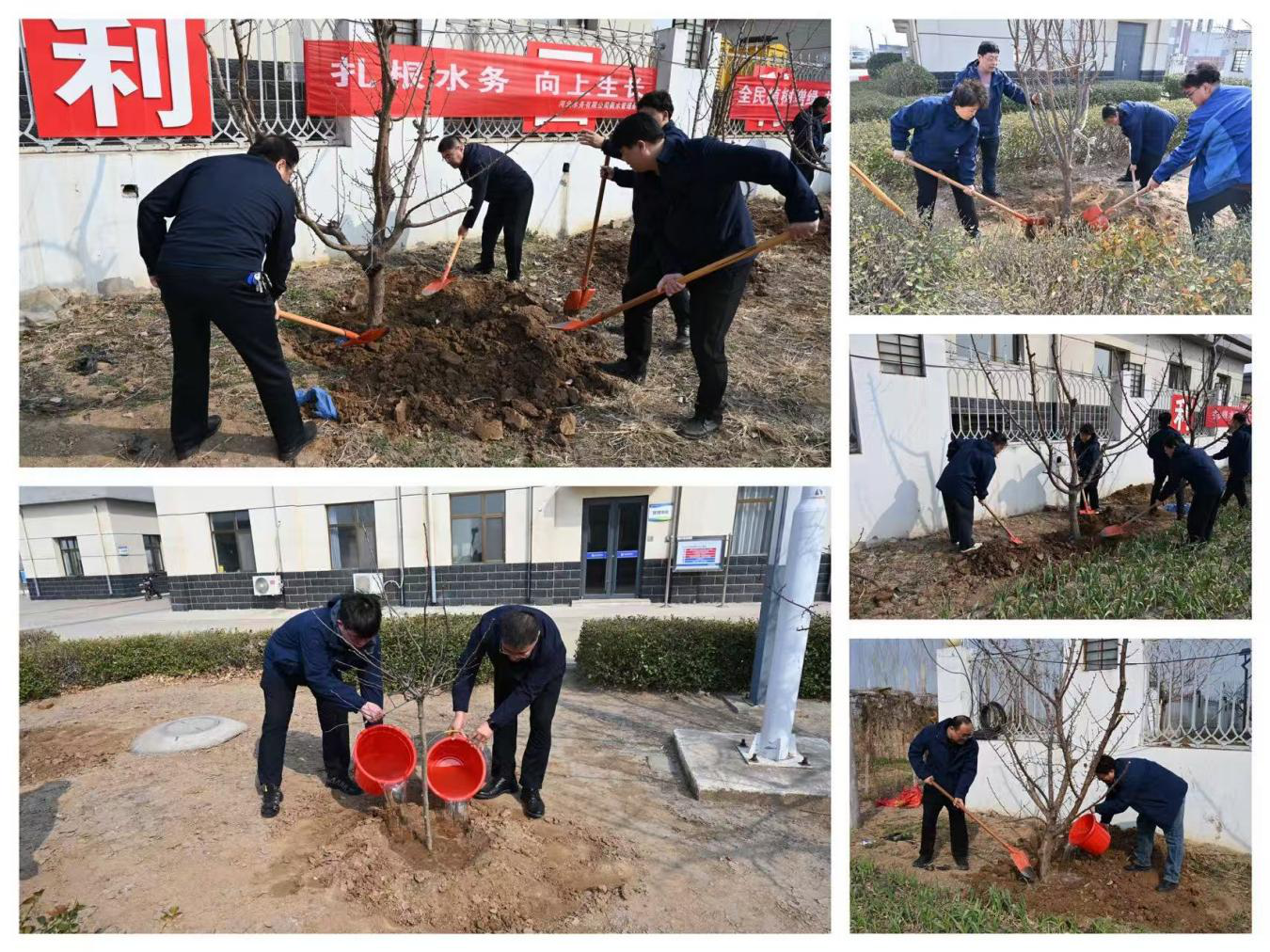活动现场,大家热情高涨、分工协作,一起挥锹铲土、栽种扶苗、培土压实、提水浇灌,一道道工序有条不紊。通过2个多小时的集中劳动,共栽种杏梅、山楂、花椒树苗30余株,一棵棵树苗迎风挺立,一道道新绿延展成景。本次植树活动不仅让大家在繁忙的工作之余放松了身心,还增强了同事间的沟通与交流,进一步激发了工作热情。