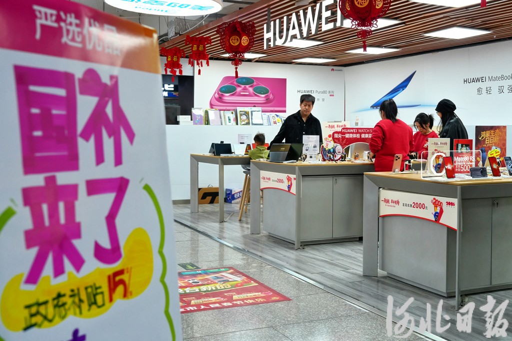2月19日,消费者在廊坊明珠大厦选购手机。河北日报记者 王伟摄