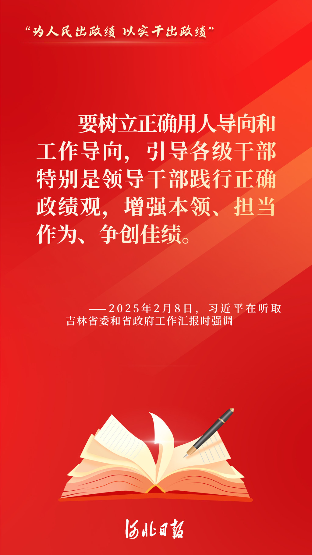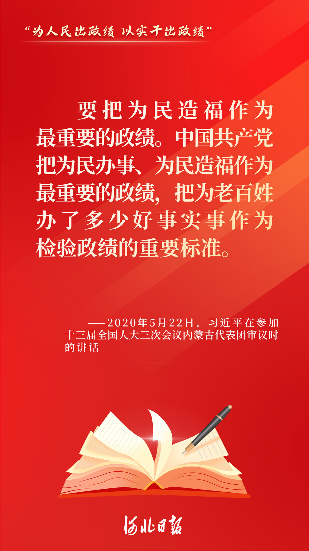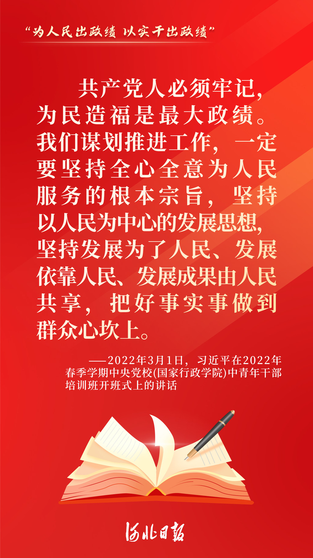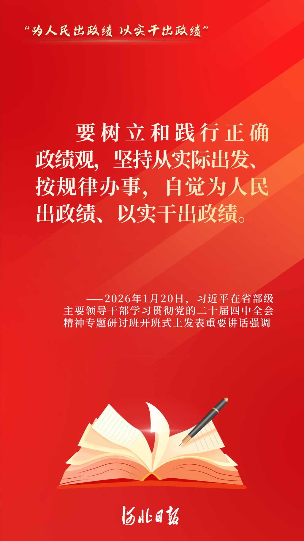 编辑:贾扬阳 来源:河北日报客户端 原标题:金句海报丨“为人民出政绩、以实干出政绩” 点赞 +1 微博 微信 我要评论 发布 相关推荐 冀时海报丨履职尽责赴盛会!河北代表委员带来这些“金点子” 关注 03-03 AI 海报·数说“十四五”河北答卷丨新成就 新突破 河北金融答卷沉甸甸 关注 2025-12-05 AI海报·数说“十四五”河北答卷丨盐碱地上种出“金穗子”与“好日子” 关注 2025-11-09 金句海报|为新时代中俄关系提供战略引领 要闻 2025-05-07 金句海报|关于中柬关系,习近平这样阐述 要闻 2025-04-20 金元期货:“海南自由贸易港期货人才培养基地”成果系列报道 商讯 2025-03-25 热门 一天 三天 一周 1 净化网络餐饮安全环境 衡水市569家餐饮外卖被下线 2 衡水市商务局系列“组合拳”全链条赋能企业“出海”拓市场 3 衡水市气象局开展气象科普进校园活动 4 无人机空中“巡诊” 电力人地头“把脉” 武邑县供电公司倾力服务护航春耕春灌 5 衡水市公开招募婚姻调解员 6 精准攻关与成果转化双线并进 衡水市科技局发布2026年“双走双帮”“施工图” 7 自2024年开班以来,70个课时近1万人次参与——衡水青年文化夜校 打造年轻人业余生活新“夜”态 8 “十五五”时期怎么干?新华社播发重磅政论! 9 贯彻落实全国两会精神|河北广大干部群众认真学习贯彻习近平总书记重要讲话和全国两会精神 10 扫码知风力 科学抓春管 武邑农业气象服务进麦田 1 衡水湖畔:山桃花盛放 吸引市民踏春赏景 2 热血青年赴征程 不负韶华卫家国 衡水桃城区举行2026年上半年新兵入伍欢送仪式 3 衡水推出不动产“带封过户”改革 4 衡水:2026年度中小学教育机器人创客竞赛开赛 5 全国两会中的“衡水声音”获央媒省媒持续关注 6 春风启新程 银龄绽芳华 ——衡水老年大学2026年春季新学期开学啦 7 家门口来了北京专家! 衡水五院牵手首都医科大学三博脑科医院共建医联体 8 净化网络餐饮安全环境 衡水市569家餐饮外卖被下线 9 抢抓农时忙春管 科技赋能保丰产 ——衡水市桃城区春管春种见闻 10 衡水八极拳传人李晓阳:以拳砺初心 以身传武魂 1 守护安全 畅通消费 衡水市2026年“3·15国际消费者权益日”系列活动启动 2 人勤春来早 春管正当时——衡水市扎实推进春季农业生产纪实 3 一方小田园 “种”出新生活——衡水滨湖新区开心农场春管见闻 4 【新闻发布】每人每月最高800元 衡水向中度以上失能老年人发放养老服务消费补贴 5 衡水市工商业联合会(总商会)第七次代表大会召开 6 【新闻发布】衡水发布2025年消费维权“成绩单”——12315热线受理投诉按时办结率100% 7 衡水市将于4月初开展残疾人运动员选拔工作 8 衡水市区宝云公园:修剪养护已完工 静待花开映日红 9 2025年衡水民用水电气三表更换惠及24.5万人 10 衡水发布2月份食品安全“红黑榜” 194家生产经营主体上榜 广告 广告 广告 24小时 1 米兰冬残奥闭幕 重温河北运动员令人动容的夺冠瞬间 2 冀时评丨一颗“定心丸”激发创新“加速度” 3 共享智造“县”在时丨沧州盐山 一个把共享玩儿明白的地方! 4 对话 在雄安丨认识世界之前 这里让宝贝先爱上书 5 金句海报丨“为人民出政绩、以实干出政绩” 6 贯彻落实全国两会精神|河北广大干部群众认真学习贯彻习近平总书记重要讲话和全国两会精神 7 垂直大模型赋能产业高质量发展(一)|“一键炼钢”,告别冶炼“黑箱” 8 【“十五五”开局看衡水】数智领航“丝”路新程——安平丝网产业蝶变再升级 9 一烙一烫承古韵 千葫百态绘匠心——探访深州市葫芦烙画技艺 10 白祥友名校长工作室 | 激潜教育探索随笔(第781期)