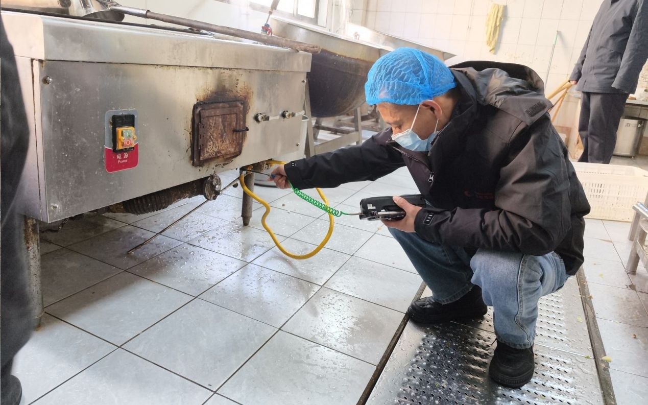 随后,检查组来到景县梁集中学,深入学校食堂后厨,对燃气管道、灶具连接、报警器联动装置及熄火保护装置进行了全面“体检”。检查组重点强调,学校是人员密集场所,安全责任重于泰山,要确保报警器100%有效联动,坚决杜绝任何意外发生。