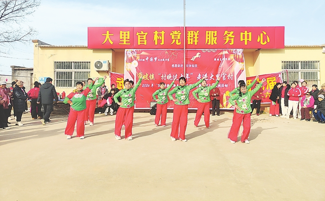 审坡镇大里官村的文化广场上,座椅早早被来观看“村晚过大年”的群众占满。来自周边村镇的十余支舞蹈队和本地文艺爱好者接连登台,《拜新年》《中国龙》等25个节目引得台下村民阵阵喝彩。演员们用饱满的热情,为现场观众呈现了一场视听盛宴,展现出新时代乡村群众健康乐观、积极向上的精神风貌。一歌一舞间,“过大年”的热闹、烟火气、人情味,都“种”在了村民心里。