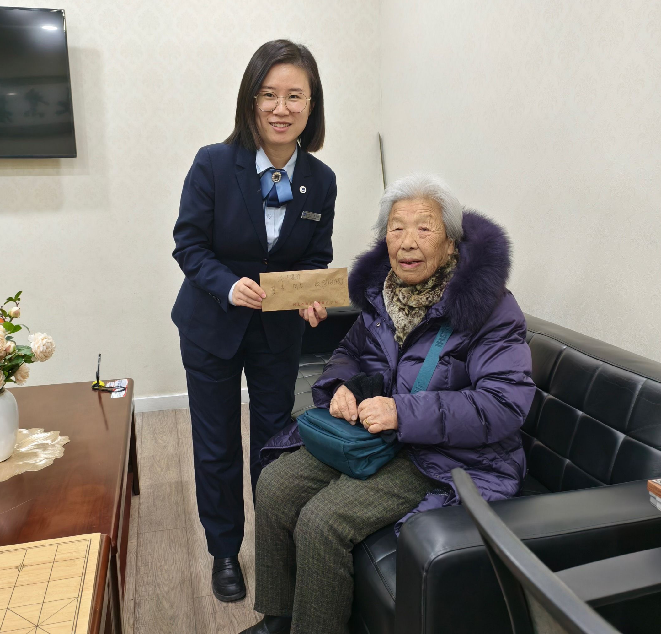 据了解,张彩芳老人13岁投身解放战争,后奔赴抗美援朝战场担任前线通讯兵。她在信中详细讲述了自己在办理业务时,支行员工始终态度温和、耐心细致,主动靠前解答疑问、协助解决难题,用高效与暖心的服务消除了她的顾虑,让她感受到实实在在的安心与便利。