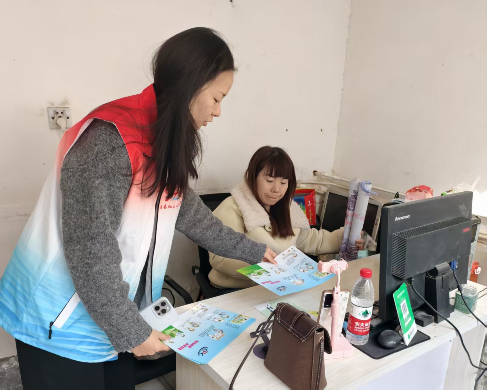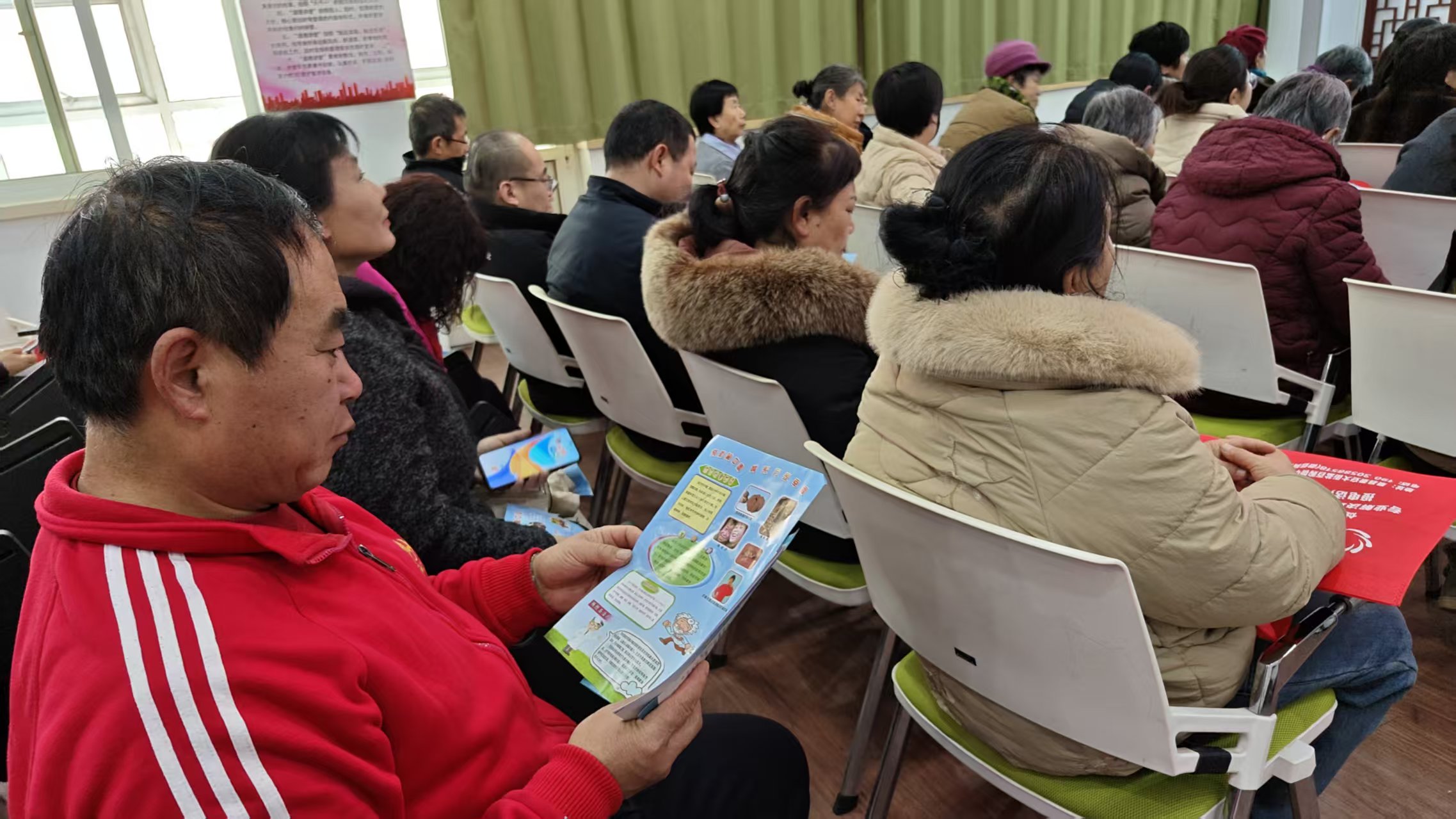 讲座结束后,社区工作者分组行动,将宣传延伸至辖区公园、沿街商铺、居民小区等重点区域。社区工作者不仅向过往群众、商铺经营者、小区住户发放宣传手册,还面对面讲解结核病的传播特点和日常预防技巧等知识,引导大家关注自身健康,养成勤通风、强锻炼、均衡饮食的良好习惯。同时,为扩大活动宣传覆盖面,社区工作者将预防结核的小视频通过微信群的渠道进行了转发,使防结核知识突破空间限制,实现“线上线下同频共振”,让健康理念深入每个家庭。