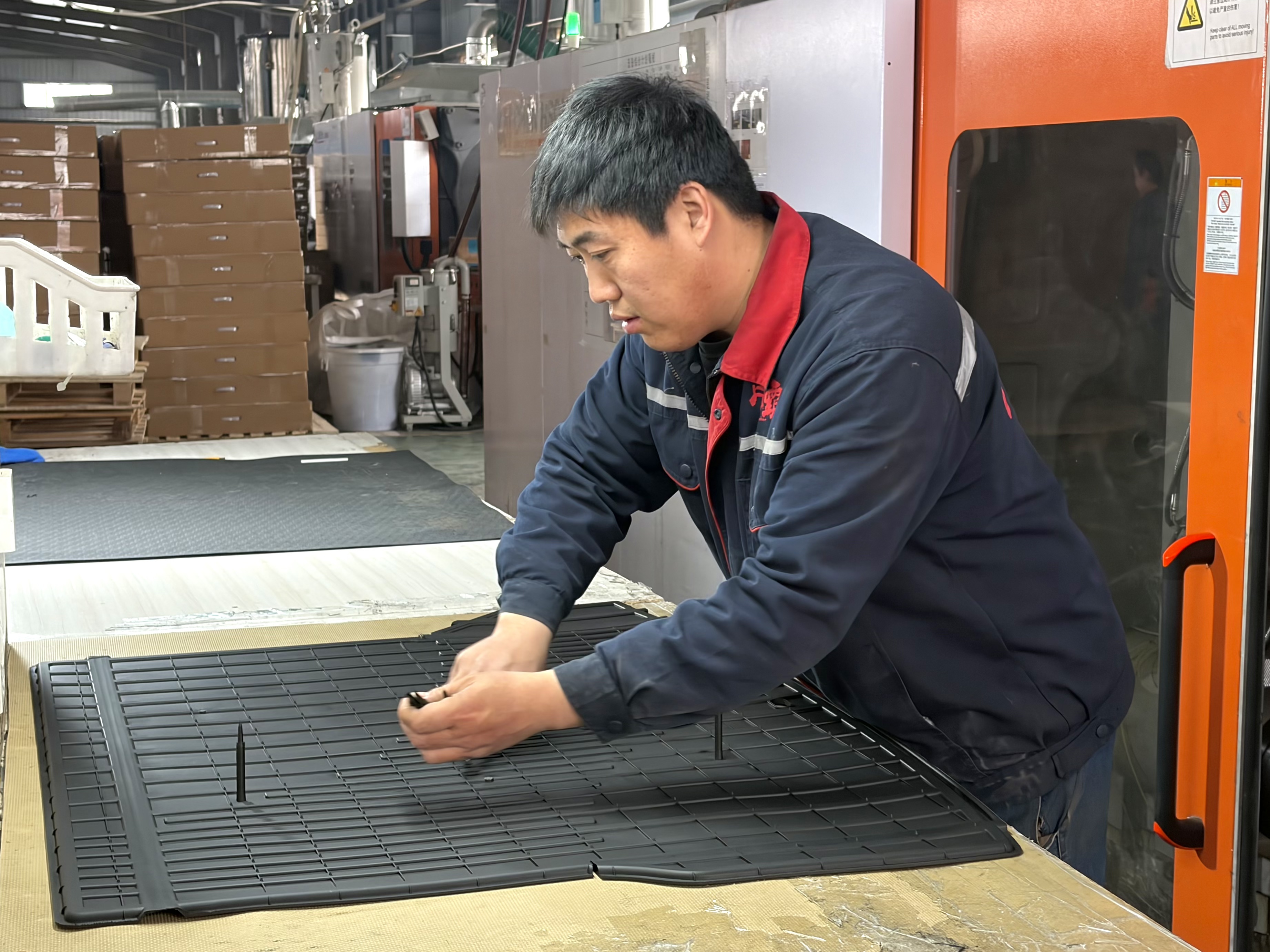 “我们创新使用聚乙烯发泡材料搭配防滑毛刺布,解决了传统脚垫易滑动、不耐用的问题。”徐贺介绍道。同时,研发团队通过优化注塑工艺参数,让产品的环保性与驾乘舒适性实现了双重提升,企业也成功通过了ISO9001、ISO45001等多项认证,用硬核技术筑牢产品品质根基。