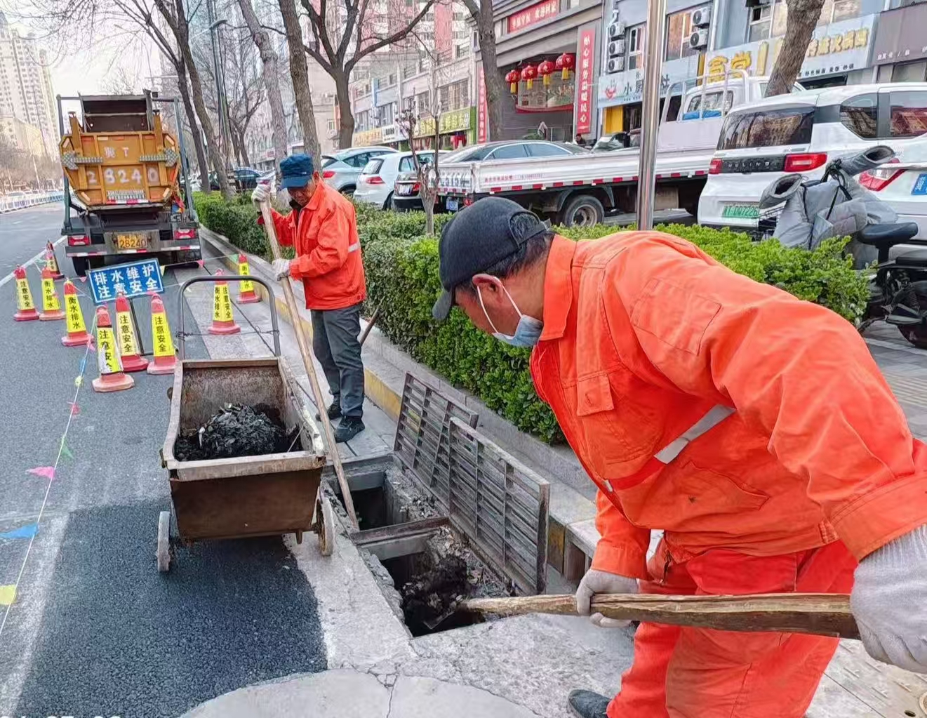 此次春季清淤工作坚持“精准施策、全面覆盖、标本兼治”的原则,聚焦市区主干道、老旧小区、餐饮集中区、菜市场周边等排水重点区域和薄弱环节,科学调配高压清洗车、吸污车等专业设备,采用“机械为主、人工辅助”的联合作业模式,对污水管道实施系统性清淤疏通。机械作业重点对主干管网进行高压冲洗、吸污作业,高效清除管道内深层淤积物;人工则对机械难以触及的检查井、雨水口、管道死角进行细致清掏,确保清淤工作无死角、无遗漏。
