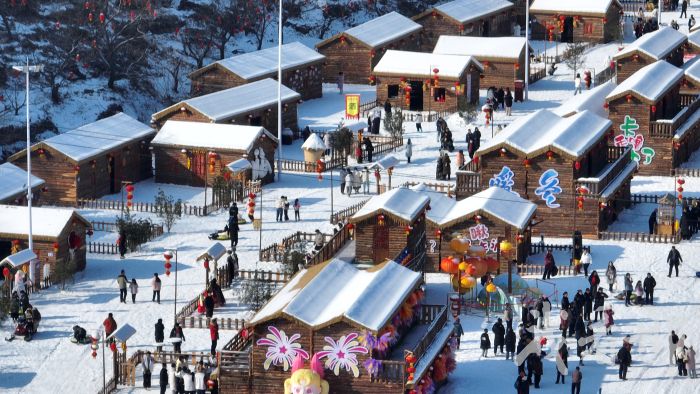 今年春节假期,信都区浆水镇前南峪村抗大1940街区雪韵小镇以雪为媒,推出木屋市集与民俗体验,让冬日里的街区活起来、火起来(资料图片)。
