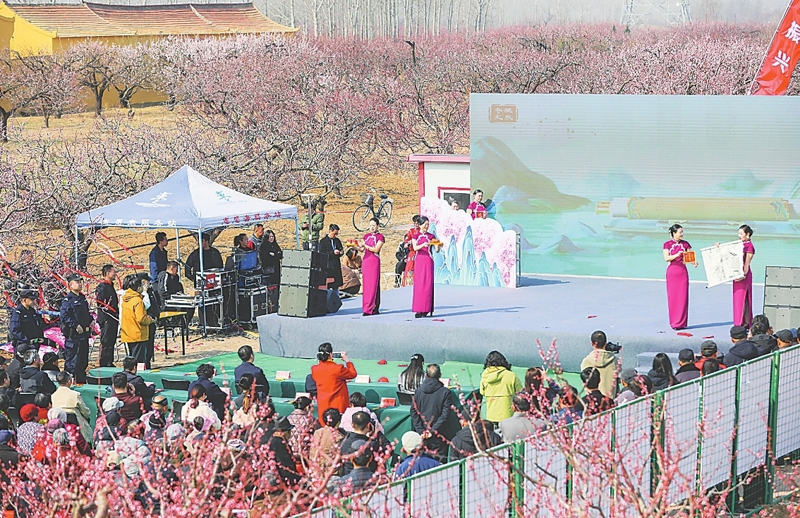 活动当日,东李纸房村千亩杏林如云似雪,微风拂过,花影摇曳、落英缤纷,一眼望去满是春日芳华。开幕式上,枣强县正式发布春季精品旅游线路。随后,非遗展演、歌舞戏曲、曲艺表演接连登场,婉转的唱腔、灵动的舞姿,让现场观众连连称赞,掌声、喝彩声此起彼伏,将开幕式氛围推向高潮。