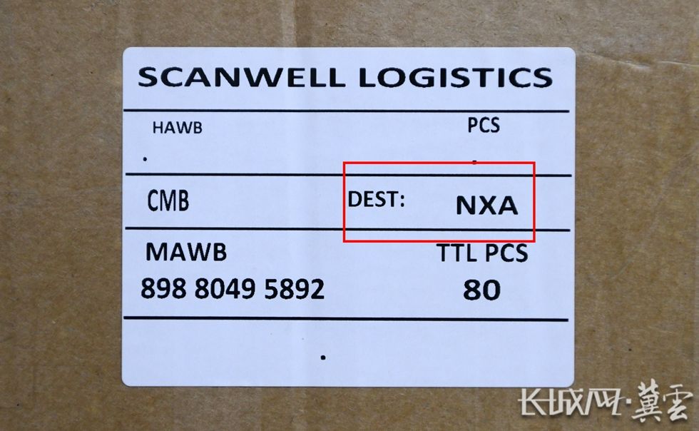 首票空运货物上的雄安航空三字代码“NXA”。雄安新区宣传网信局供图