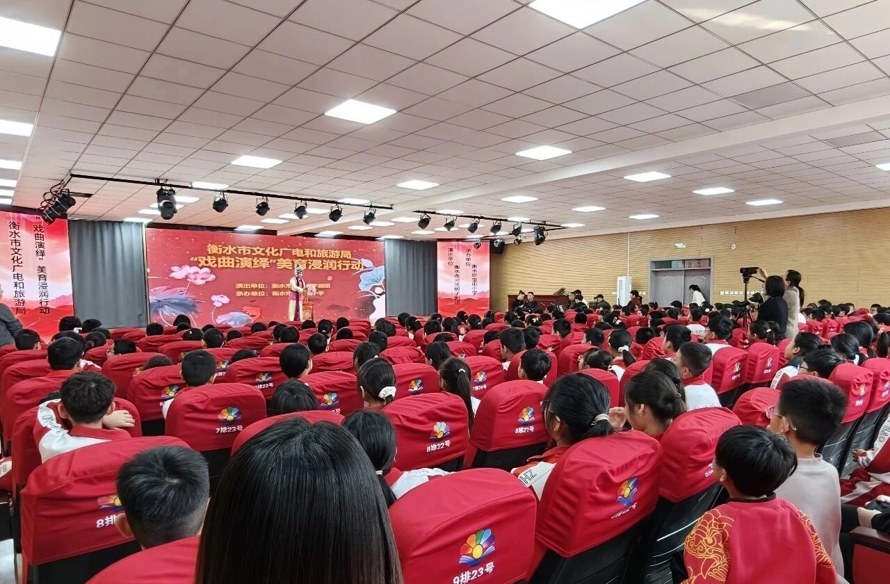 近日,衡水市文化广电和旅游局组织市河北梆子剧团开展戏曲进校园演出活动。活动以“剧目演出+知识讲解+趣味互动”的创新形式,让学生在沉浸式体验中感受传统戏曲魅力,有效激发了同学们对戏曲艺术的热爱与探索。