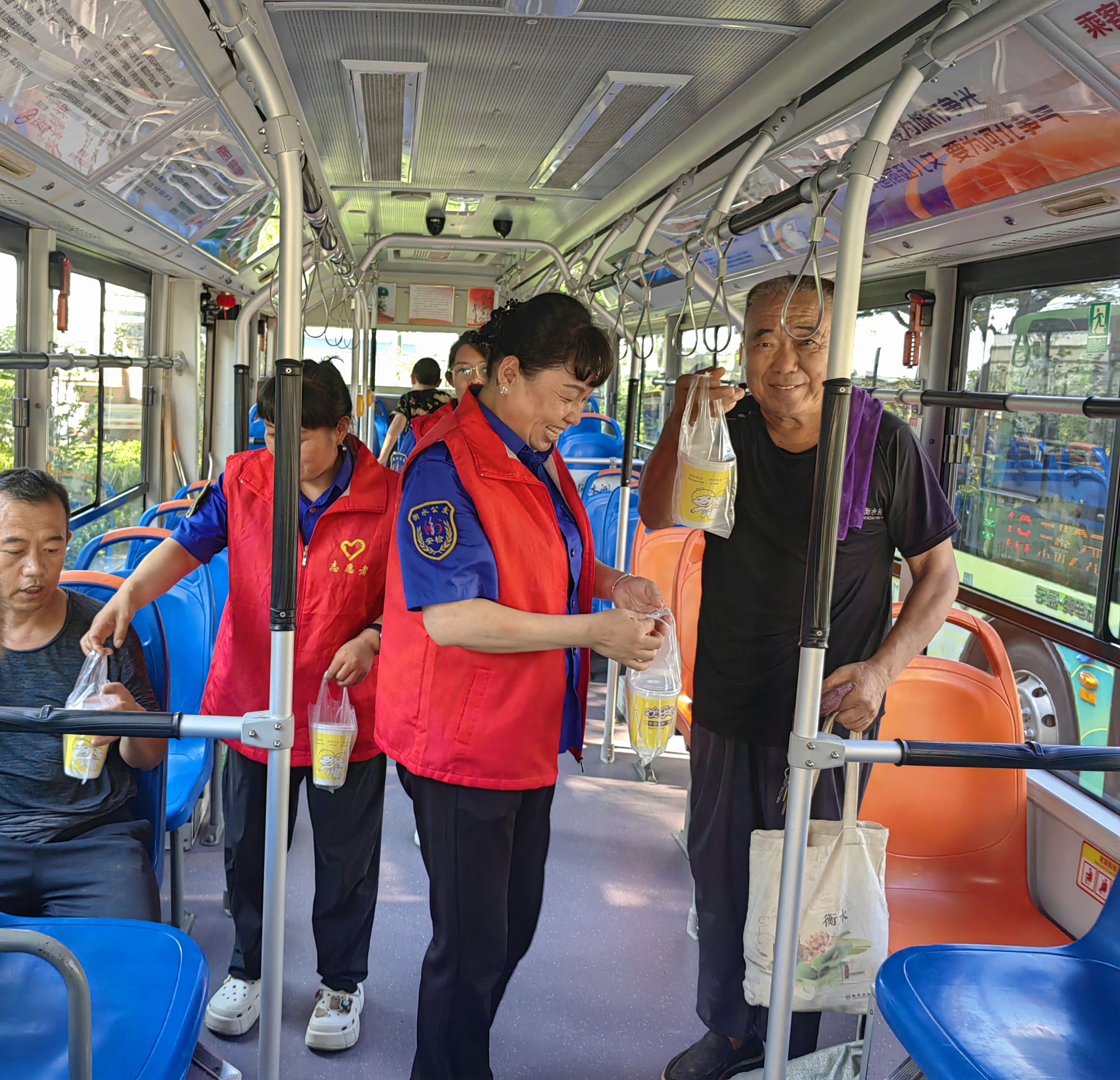 2025年8月,酷暑难耐,朱琳带着休班司机在爱心驿站分发绿豆汤,为候车乘客和户外劳动者送上清凉。