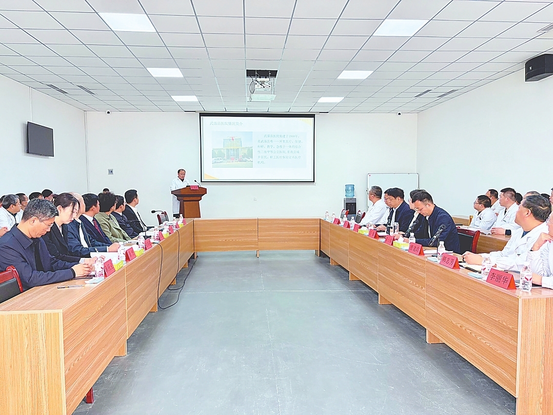 武强县医院党委书记曹建政介绍医院情况。 夏兆臻 摄