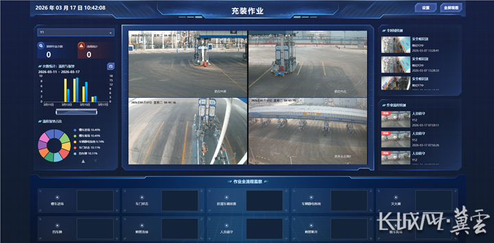 “请注意,静电接地线连接不牢固,请重新检查并固定。”3月17日10时30分,鑫海化工液化气装车区3号台位,一辆液化气运输槽罐车正在开展充装作业,台位区上方的高精度摄像头精准捕捉到静电接地线与槽罐车接地端子连接松动、接触不实,并触发语音预警。工作人员按照系统指引排查,重新进行静电接地操作后,摄像头二次核验,语音提示“静电接地合格,可以继续作业”,装车流程得以顺利推进。