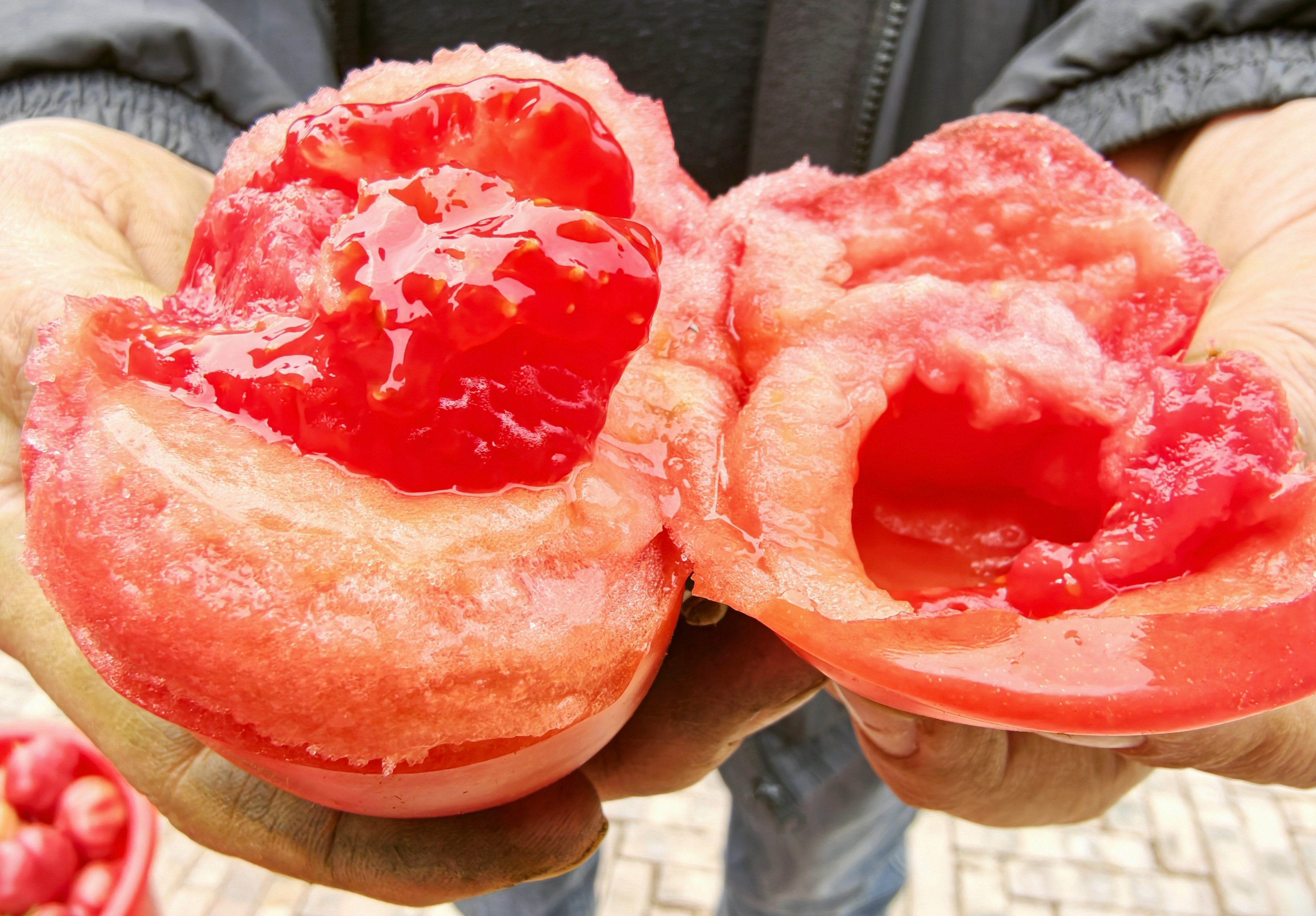 “我们用的全是有机肥,不打药、不催熟、不用‘膨大剂’,让每一颗果子自然成熟。你尝尝,是不是小时候那个味儿?可现在却销售不出去。”崔丙昌捧起一颗西红柿,眼神里既有自豪,更多的是不甘。