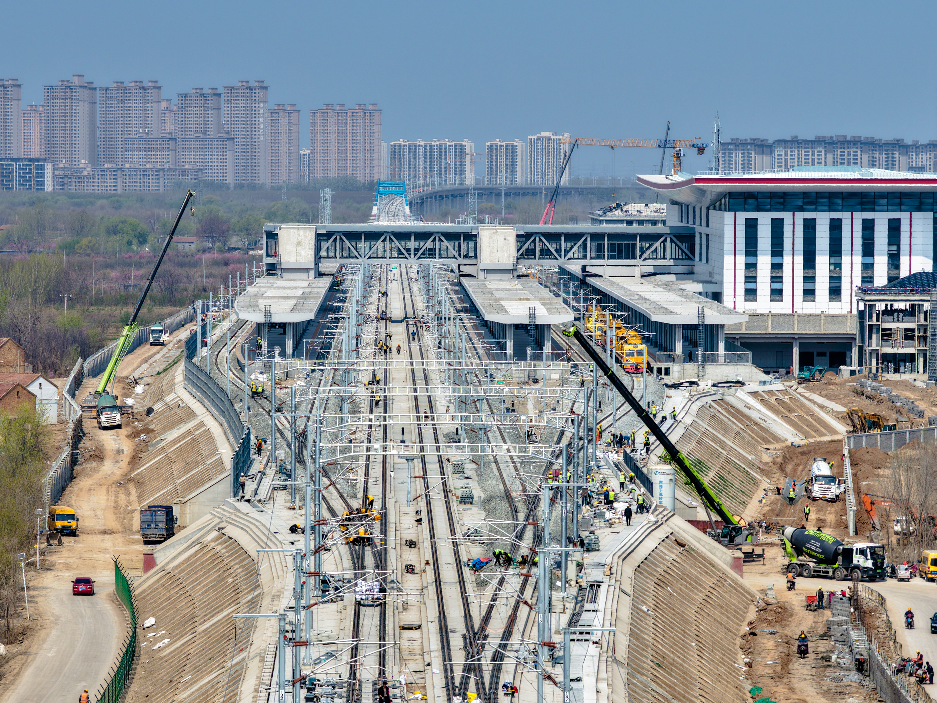 春潮涌动,建设正酣。在雄商高铁衡水南站项目施工现场,机械轰鸣、塔吊林立,站房、轨道、配套工程多作业面同步推进,站前广场、地下停车场、路网管网等配套工程同步加快建设,全力打造“零换乘”综合交通枢纽。