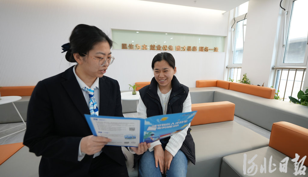日前,雄安人力资源服务产业园人力资源服务大厅内,工作人员(左)正在为咨询者讲解“雄才卡”的申领方法。(河北日报资料片)河北日报记者 李畅摄