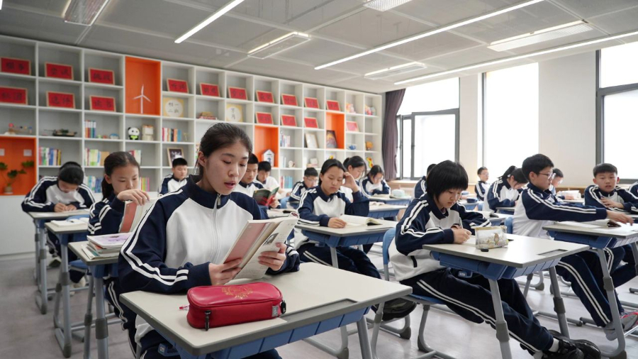 北京四中雄安校区初一(2)班的乔梓轩去年随妈妈来到雄安,他说:“学校的教学资源、配套设施都非常优质。”