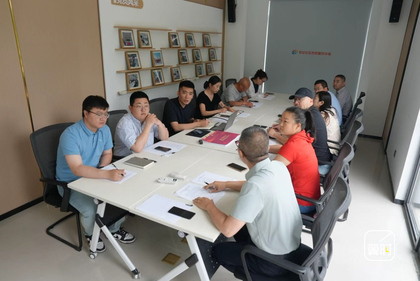 易安社区法治疏解议事会成员们正在讨论问题