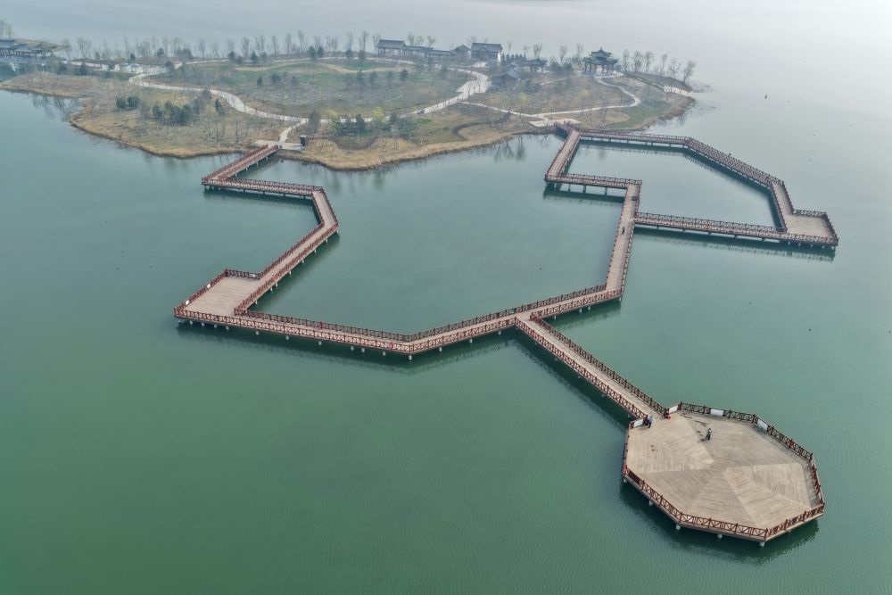 这是雄安新区白洋淀燕南堤(3月26日摄,无人机照片)。新华社记者牟宇 摄