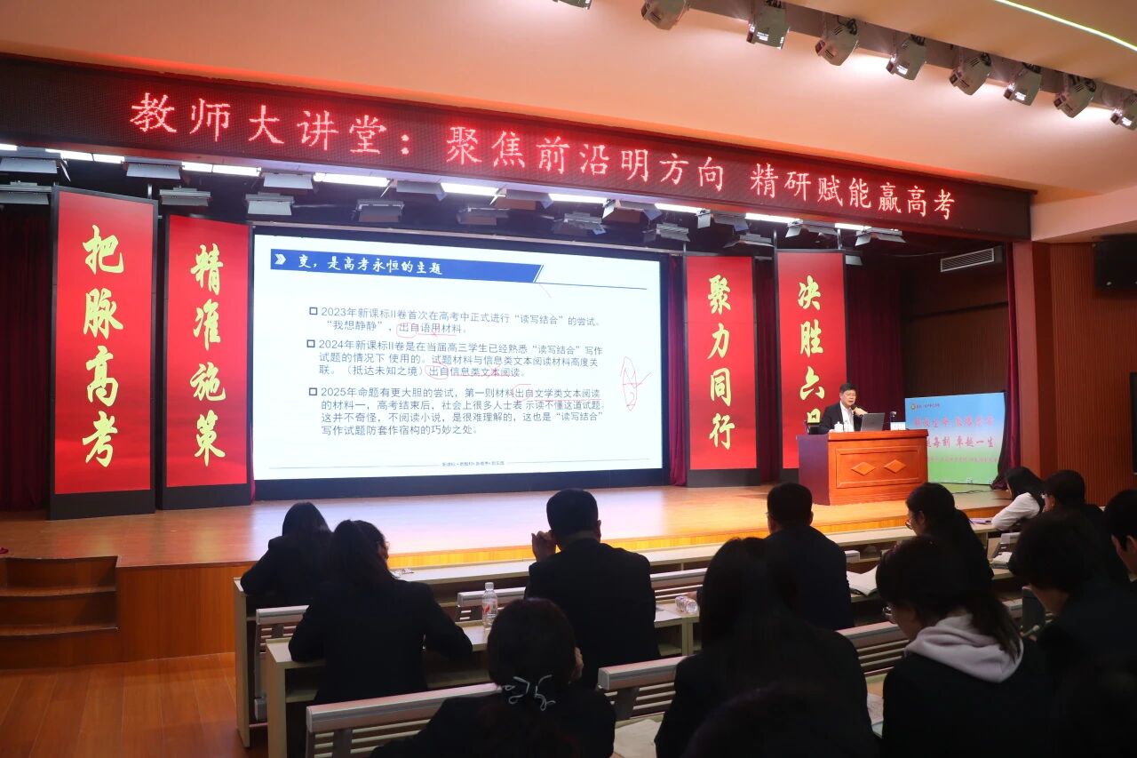 为精准把握2026年高考语文命题新趋势,优化备考策略,提升师生备考效率与质量,近日,衡水十三中特邀金太阳教科所所长李庆久,为师生带来了一场兼具理论高度与实战价值的语文学科专题培训,为备考工作注入强劲动力。