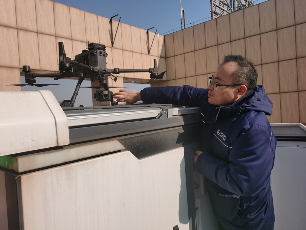 近日,河北港口集团曹港股份技术信息部自动化技术员孙发森在检查巡检无人机。河北日报记者贡宪云摄