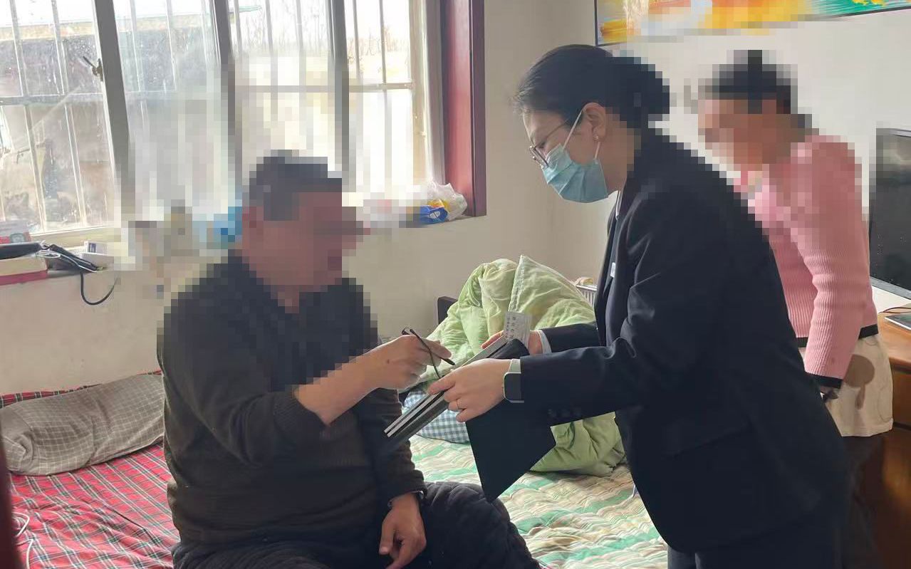 网点工作人员携带移动办公设备,主动上门为行动不便的客户提供业务办理、账户激活等“一站式”服务。工作人员分工明确、操作娴熟,耐心指导客户填写表单、完成身份核验,整个办理流程清晰流畅,极大缩短了村民办理时间。针对老年人群体、行动不便者等特殊客户,工作人员提供“一对一”专属服务,全程协助办理各项手续,让便民服务更有温度,真正实现“服务上门、客户省心”。“我这腿脚实在出不去,正发愁呢!没想到你们上门服务这么周全,真是太感谢了!”腿脚不便的马大爷紧紧握着工作人员的手,发自内心地表达了由衷的感激。