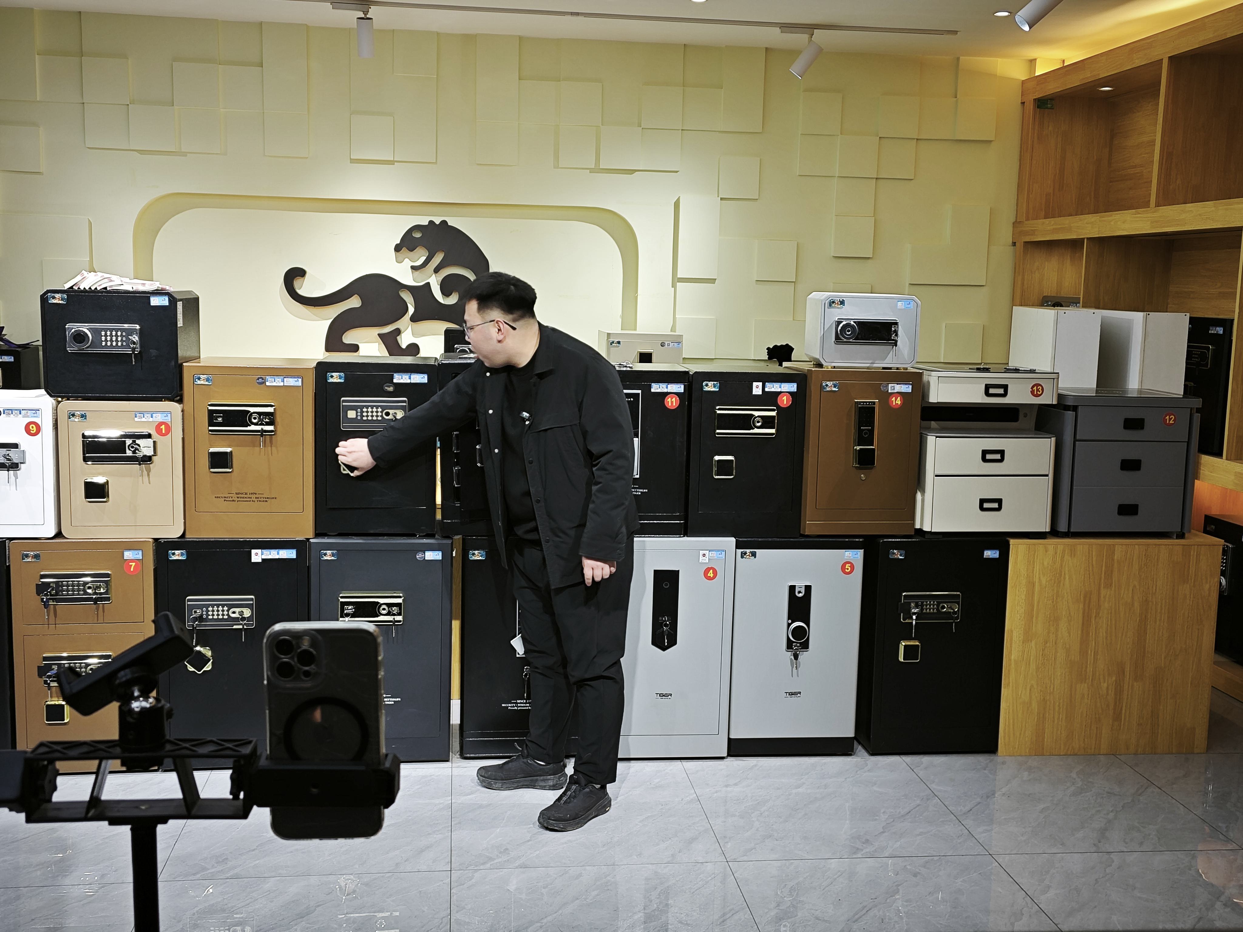 在武邑县一家金属橱柜企业的直播间里,主播孟凡震正对着镜头熟练展示产品:“这是我们的虎牌保险柜,采用加厚钢材,防撬防盗,智能面板操作……”讲解专业细致,网友咨询不断。