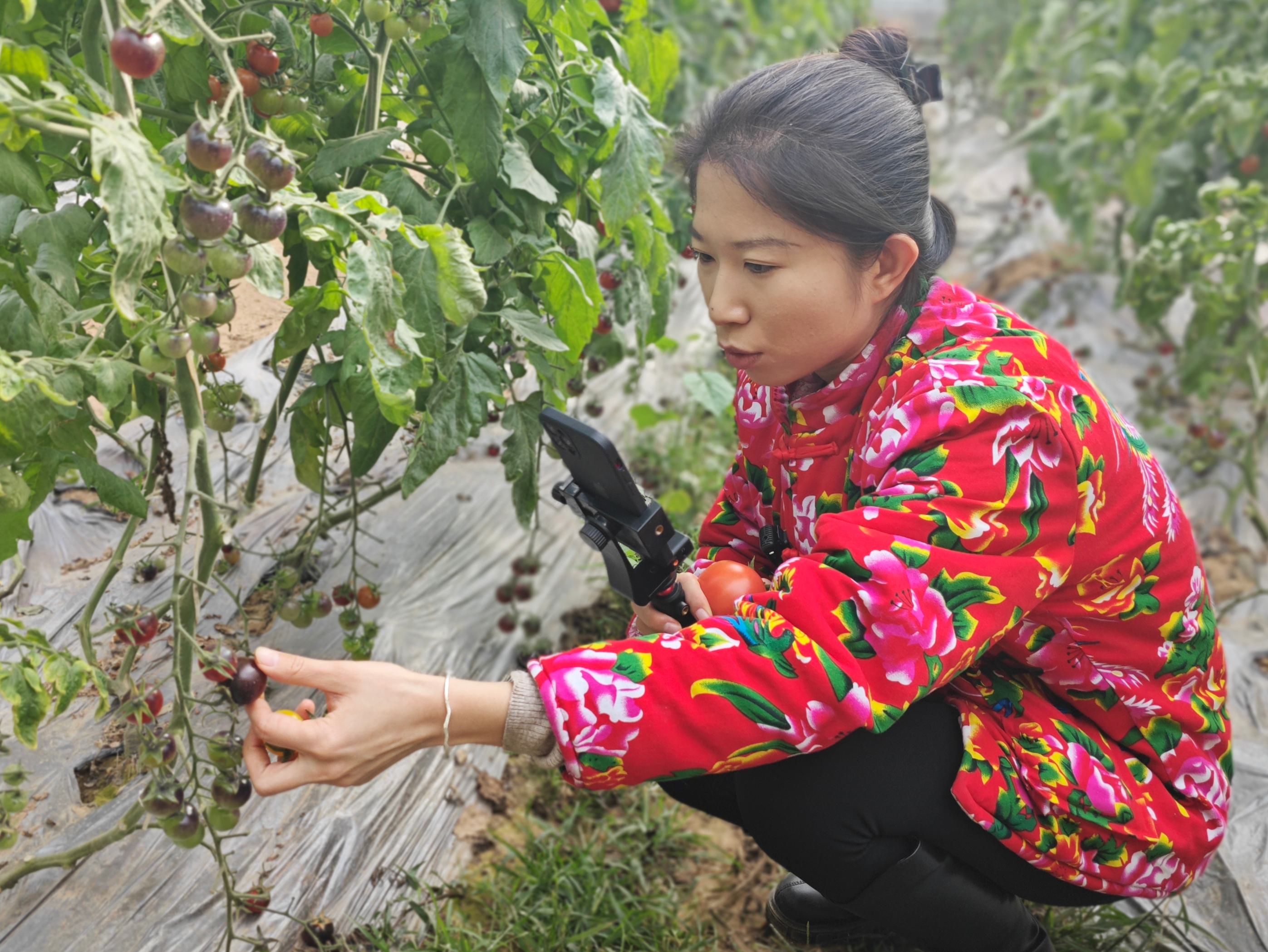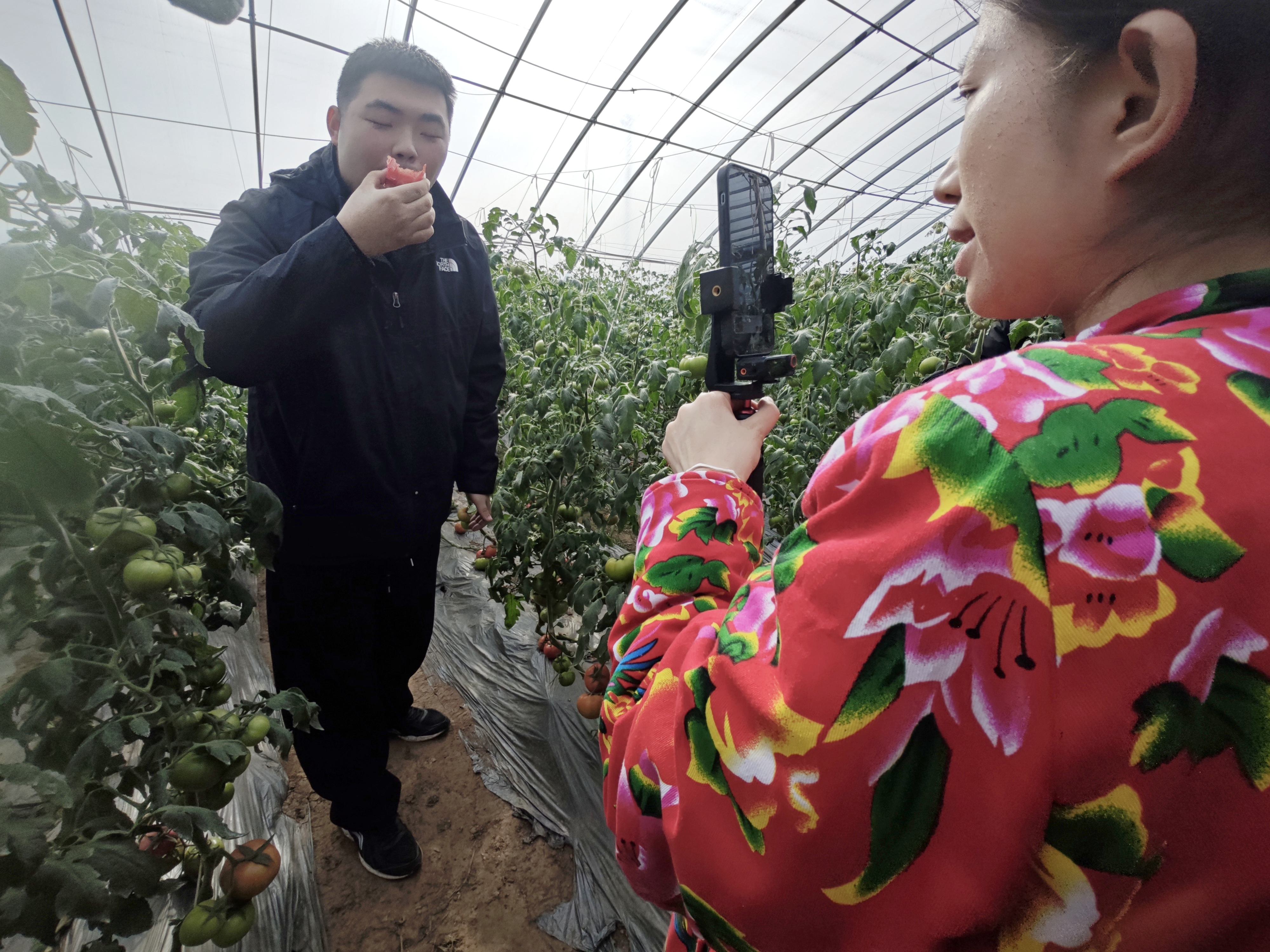 “家人们看,这是我们今天刚移栽的西红柿苗,根壮苗旺,到了五月份,结出来的果子个个沙瓤多汁。”主播一边介绍,一边将镜头凑近嫩绿的幼苗。直播间里,有人问怎么预订,有人好奇种植过程,互动区热热闹闹。棚外,快递车已经就位,只等果实成熟,这些“被见证着长大”的西红柿将直接发往全国各地。