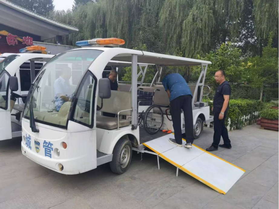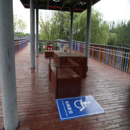 创新引领细节创优,设施功能双提升。在设施打造上,枣强县坚持创新引领与细节提质并重,多项做法走在全国前列。公园出入口增设设施分布图与导览图,全国首创新型无障碍拱形通道,既有效阻隔非机动车闯入,又保障残障人士安全便捷通行,该项技术获国家专利。在配套设施上,停车场全面配套充电桩与轮椅通道,园内整体铺设平整防滑路线,台阶设置提示盲道与双层盲文扶手;观光车配备轮椅专席与坡道,观景平台加设双层扶手并预留休息区;公共厕所完成坡道、门型改造及抓杆、紧急呼叫装置等全套配置,休息区专设轮椅席位,实现了无障碍设施从“标配”到“精品”的飞跃。